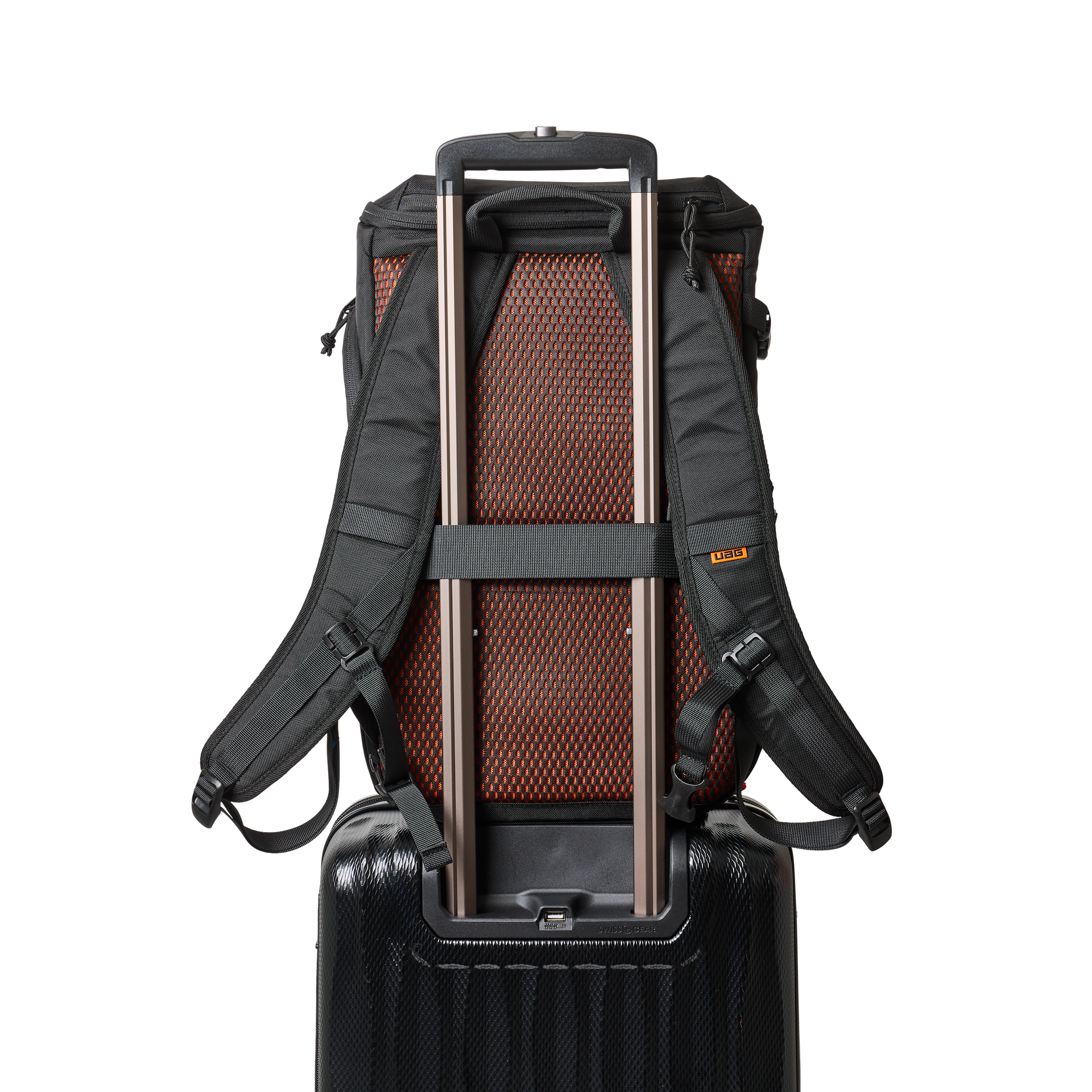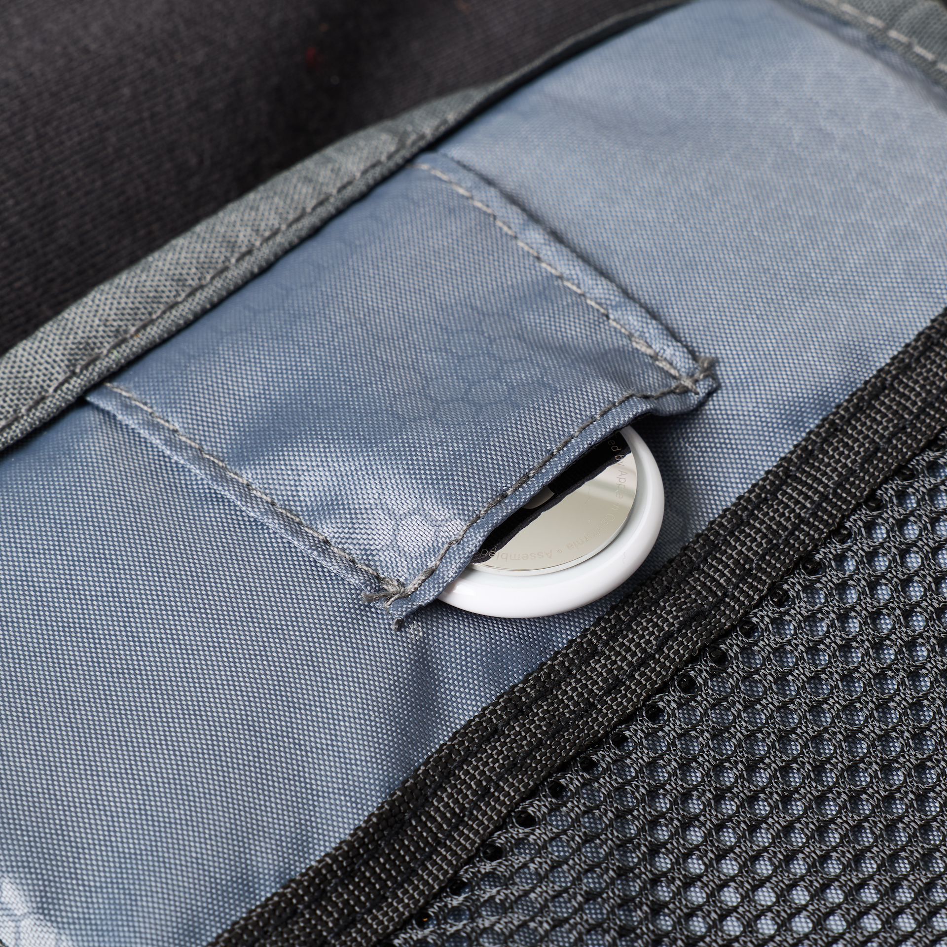 Mit Trolley-Durchlass zur sicheren Befestigung an Rollgepäck. Eine versteckte Innentasche bietet zusätzlichen Schutz für Wertgegenstände (AirTag-kompatibel).