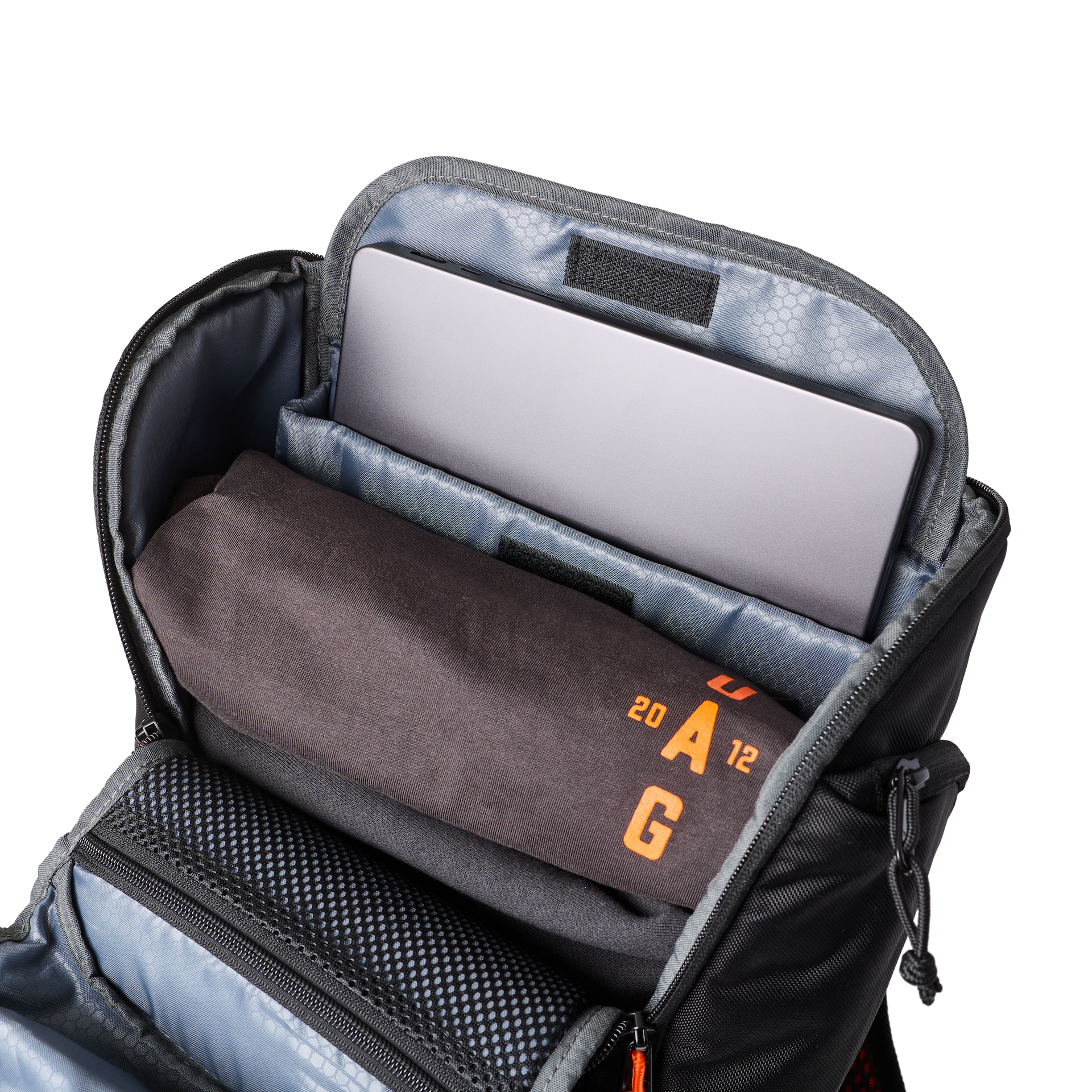 Volumen von 20 Litern mit kompletter Clamshell-Öffnung ermöglicht einfaches Packen und schnellen Zugriff, ohne umständliches Herumwühlen. Ein separates Laptopfach bietet Platz für Geräte bis 16 Zoll.