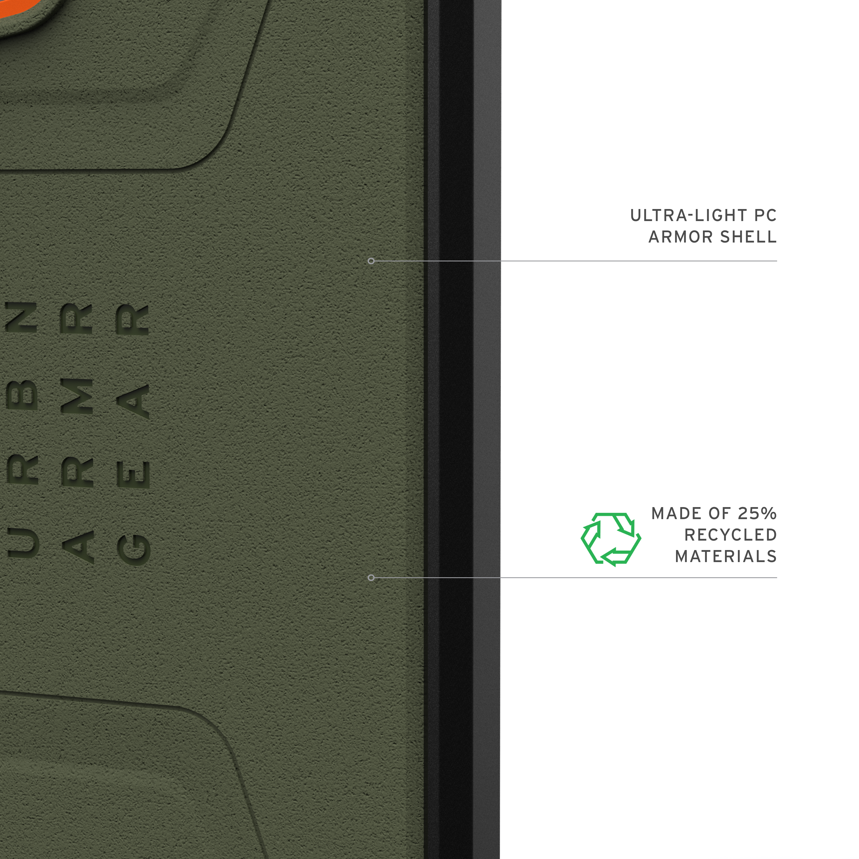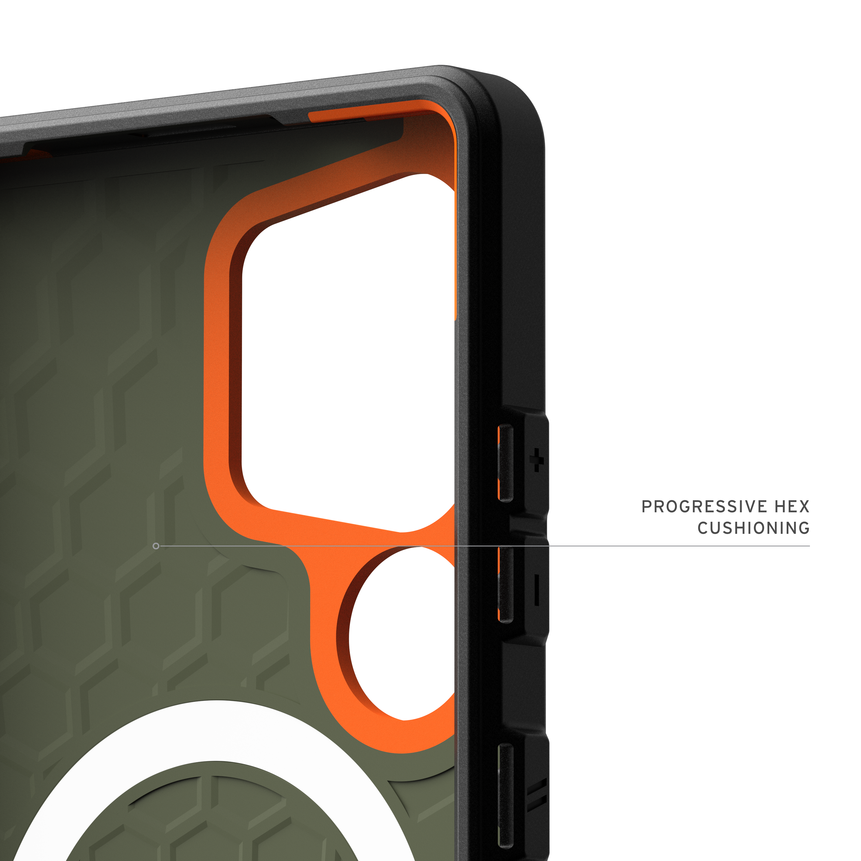 - Hypercush™‑Aufprallschutz: Entwickelt, um Stöße beim Aufprall vom Gerät weg zu leiten und zu dämpfen.