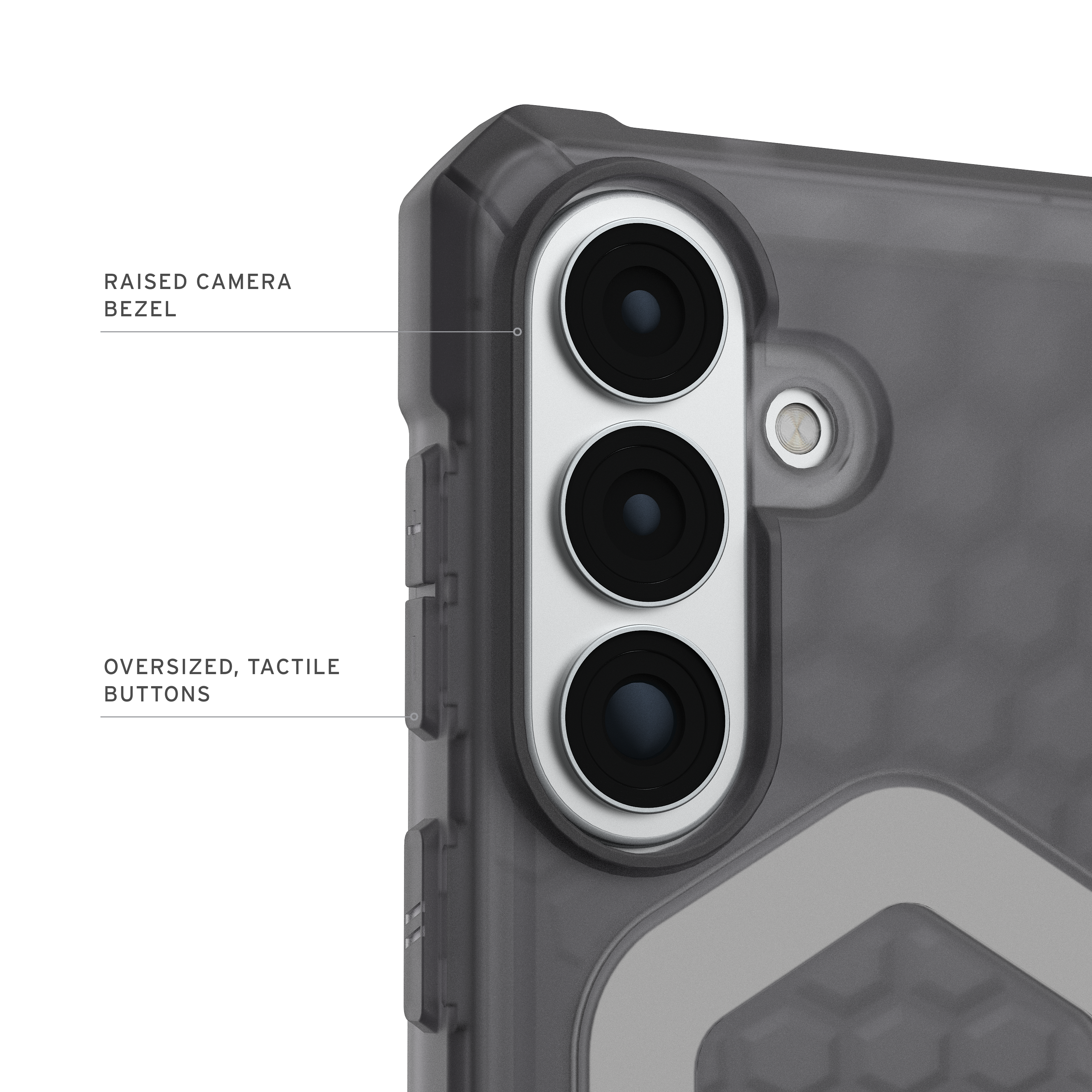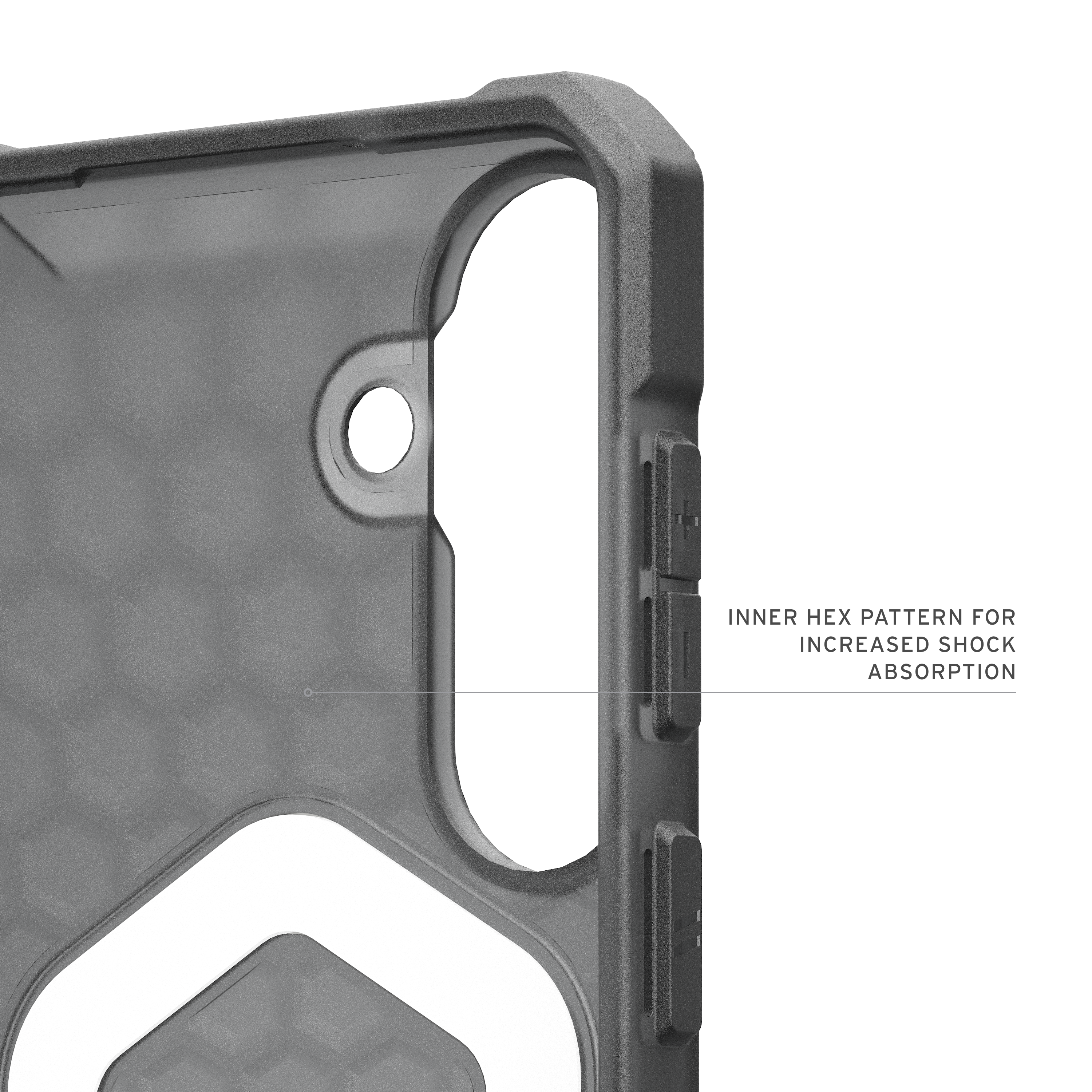 Für optimalen Schutz entwickelt, bietet es eine verstärkte Eckabsicherung, um Ihr Gerät zuverlässig vor versehentlichen Stürzen und Stößen zu schützen. Der erhöhte Kamerarand schützt Ihre Linsen vor Kratzern, während das innere Hex-Muster die Stoßdämpfung verbessert und so zusätzlichen Schutz im Alltag bietet.