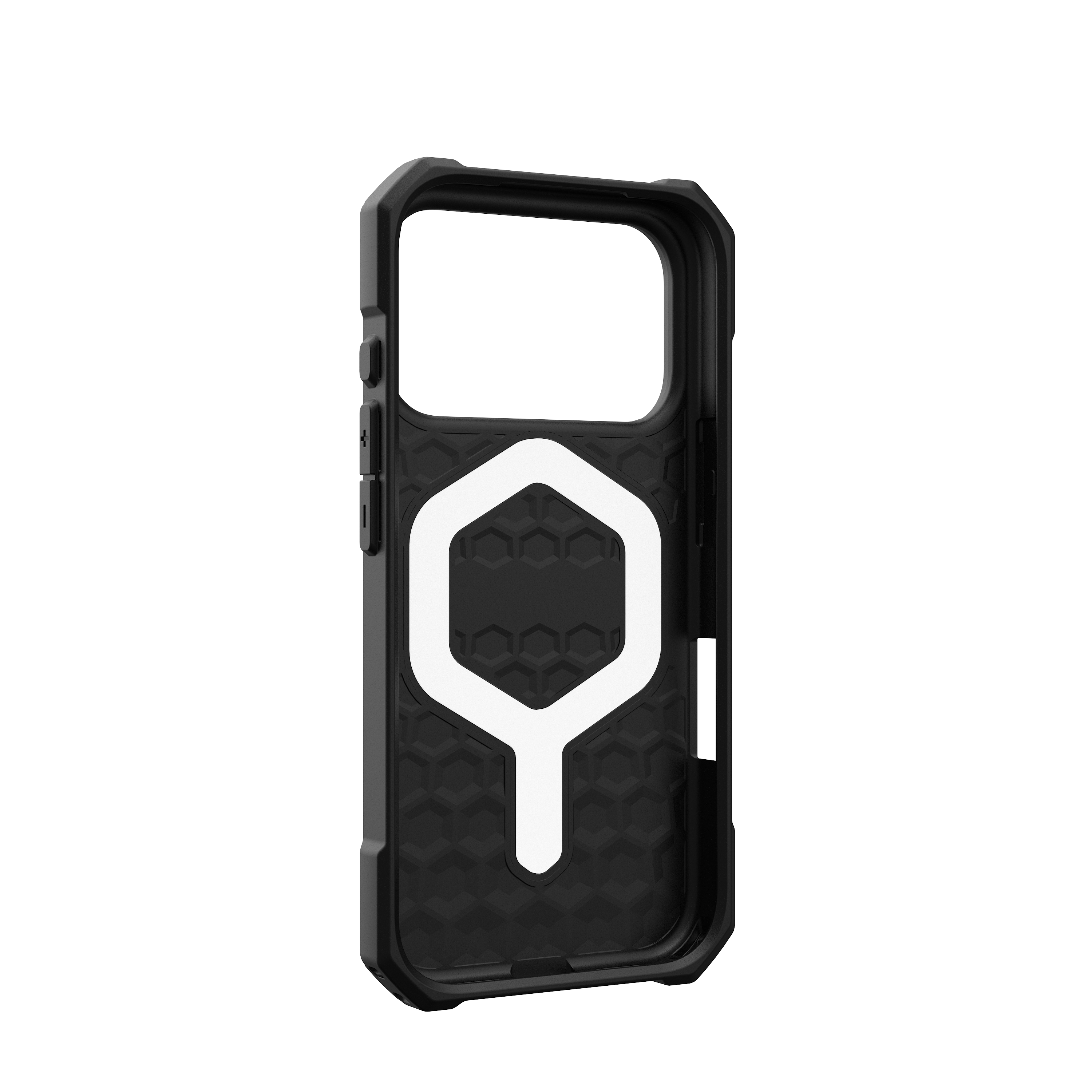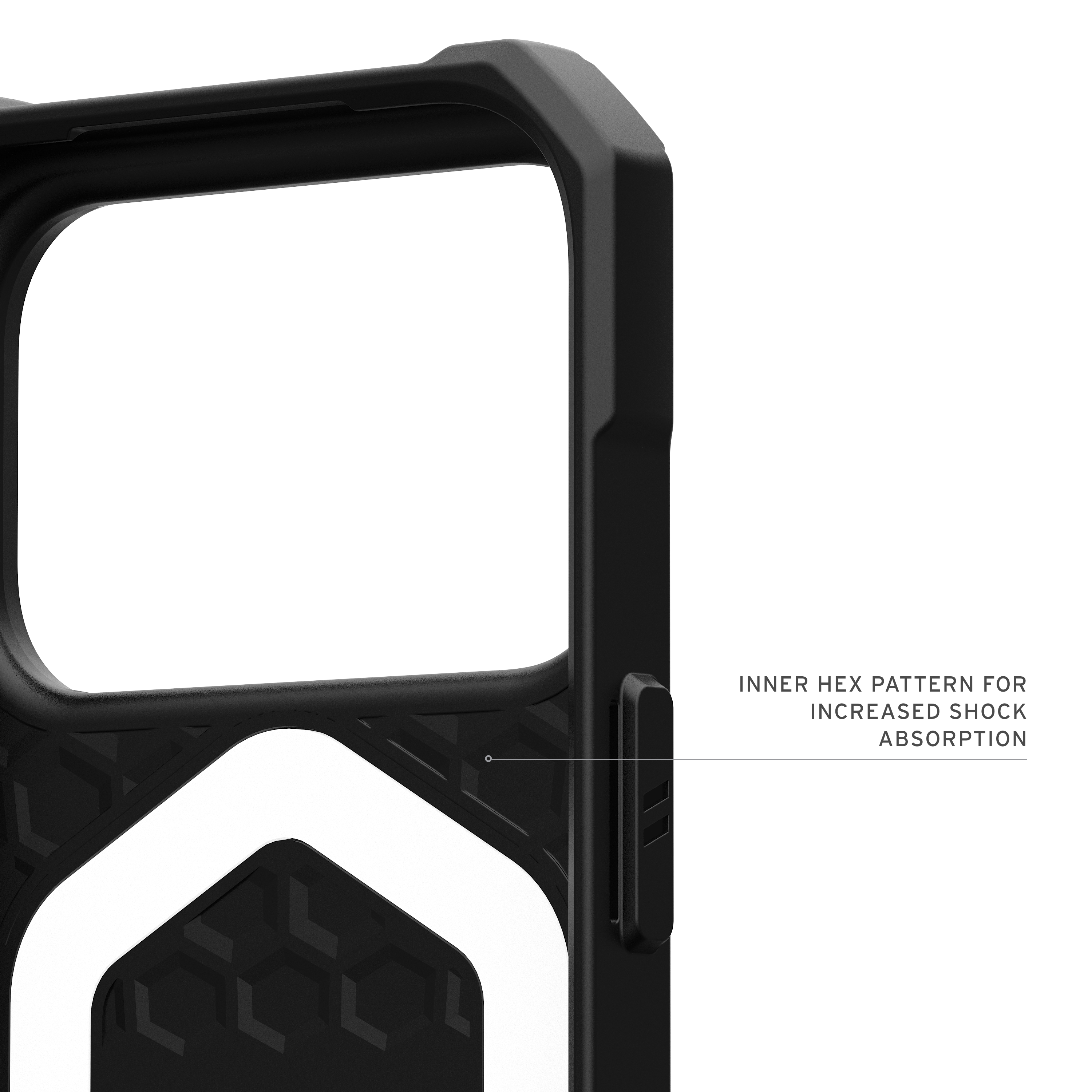 Erlebe erstklassigen Schutz ohne zusätzliches Volumen mit der Essential Armor MagSafe Hülle. Gefertigt aus leichten Materialien bietet diese Hülle zuverlässigen Fallschutz dank ihrer robusten, ko-gespritzten Konstruktion und der stoßabsorbierenden inneren Hex-Struktur. Erhöhte Ränder rund um Kamera und Display schützen Objektive und Bildschirm vor Kratzern und Abnutzung im Alltag.