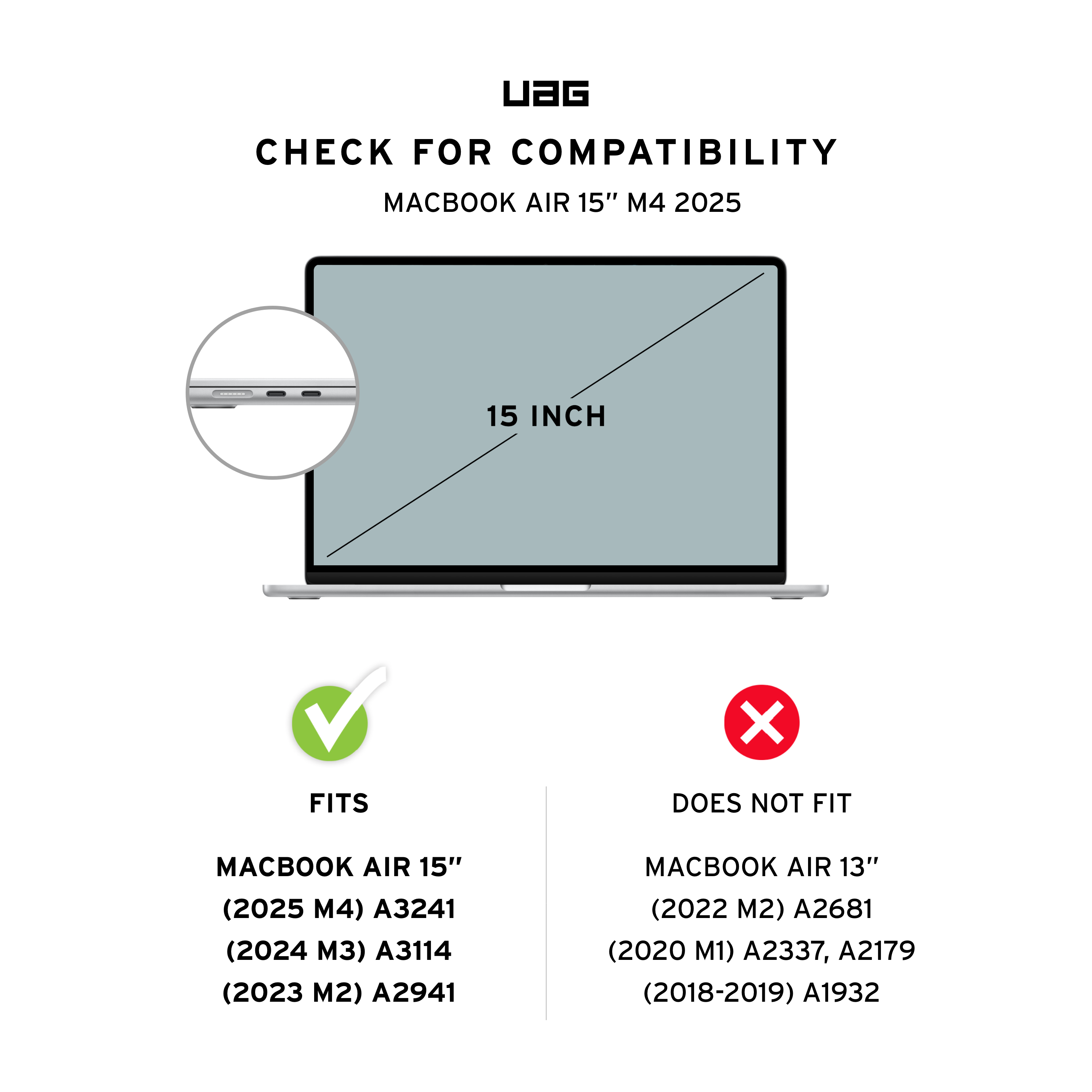 Kompatibilität: MacBook Air 15" (M5, 2026), MacBook Air 15" (M4, 2025) (Model Number: A3241), MacBook Air 15" (M3, 2024) (Model Number: A3114), und MacBook Air 15" (M2, 2023) (Model Number: A2941).