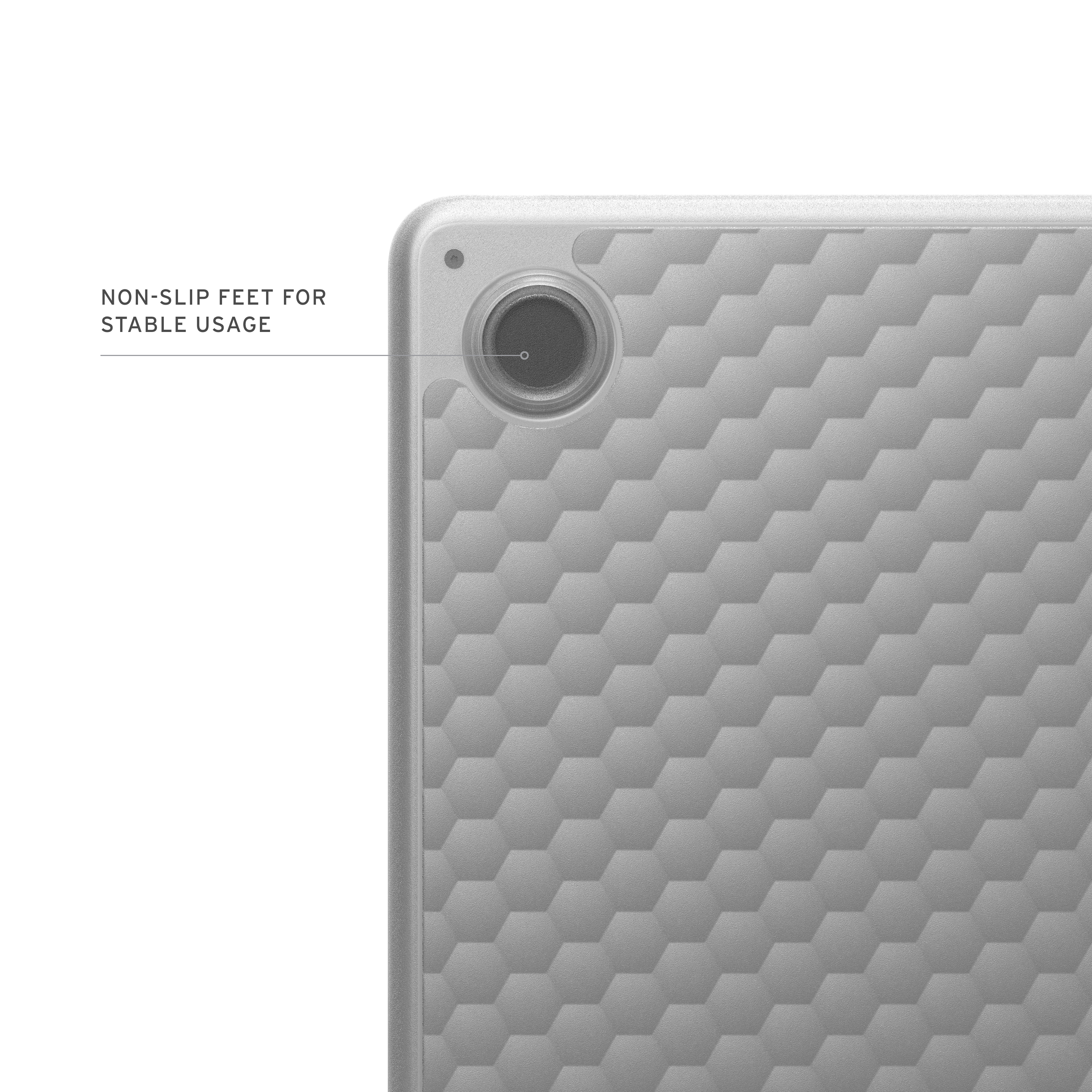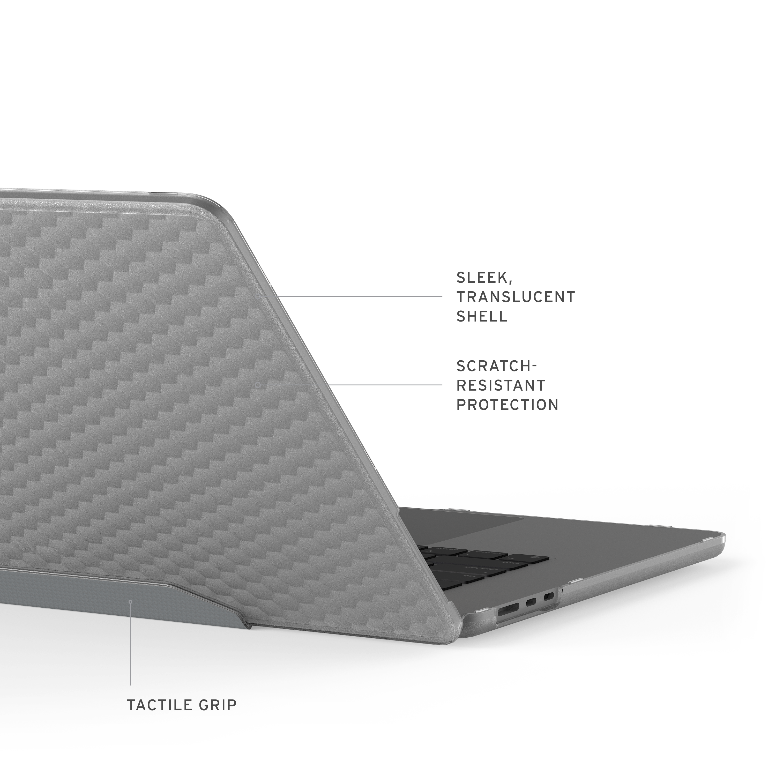 Das Essential Armor Case überzeugt mit einer leichten, einteiligen Scharnier-Konstruktion, die Ihr Gerät mit hochwertigen, stoßresistenten Materialien zuverlässig schützt. Die transluzente Hülle hebt das Design Ihres Laptops hervor, während das charakteristische Hammer-Hex-Muster eine industrielle Note verleiht. Mit einer taktilen Scharnierabdeckung, rutschfesten Füßen und vollständigem Zugriff auf alle Anschlüsse bietet dieses Case optimale Leistung und Schutz.