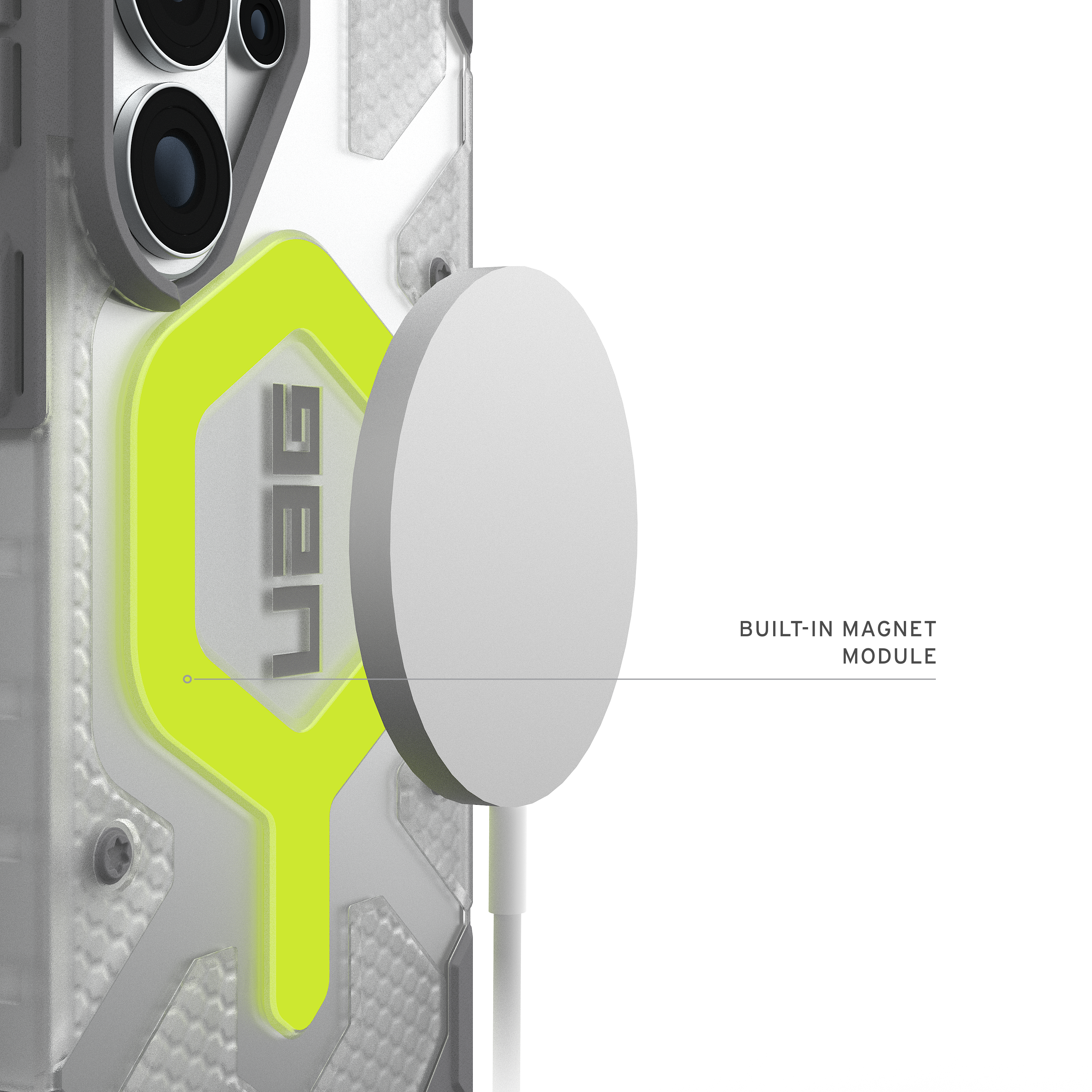 Leuchtendes Magnet-Modul: Kompatibel mit MagSafe, den meisten kabellosen Ladegeräten und magnetischem Zubehör. Unterstützt Samsung Pay.