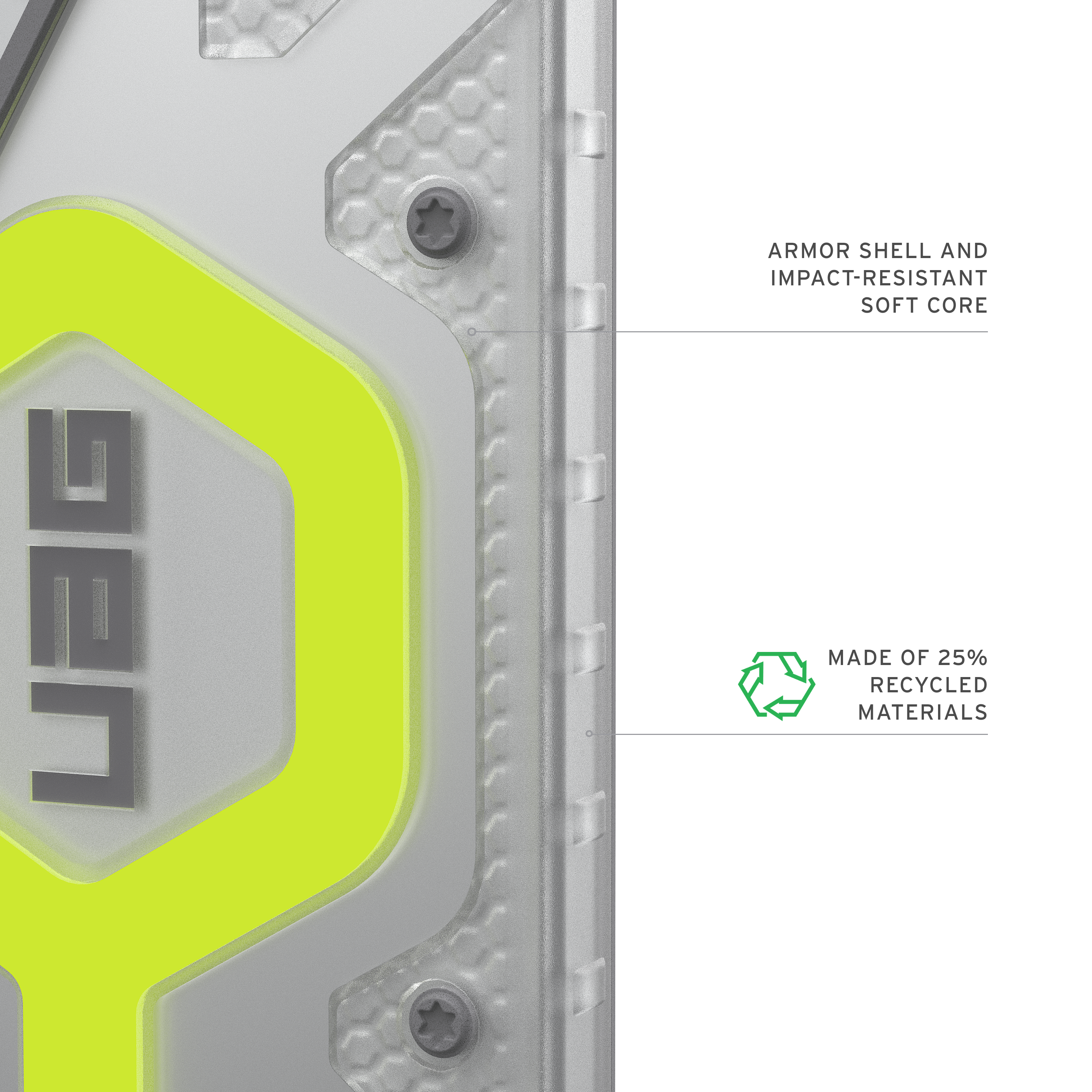 Umweltfreundliche Konstruktion: Hergestellt aus 25% recycelten Materialien und verbunden mit leistungsstarkem Schutz.