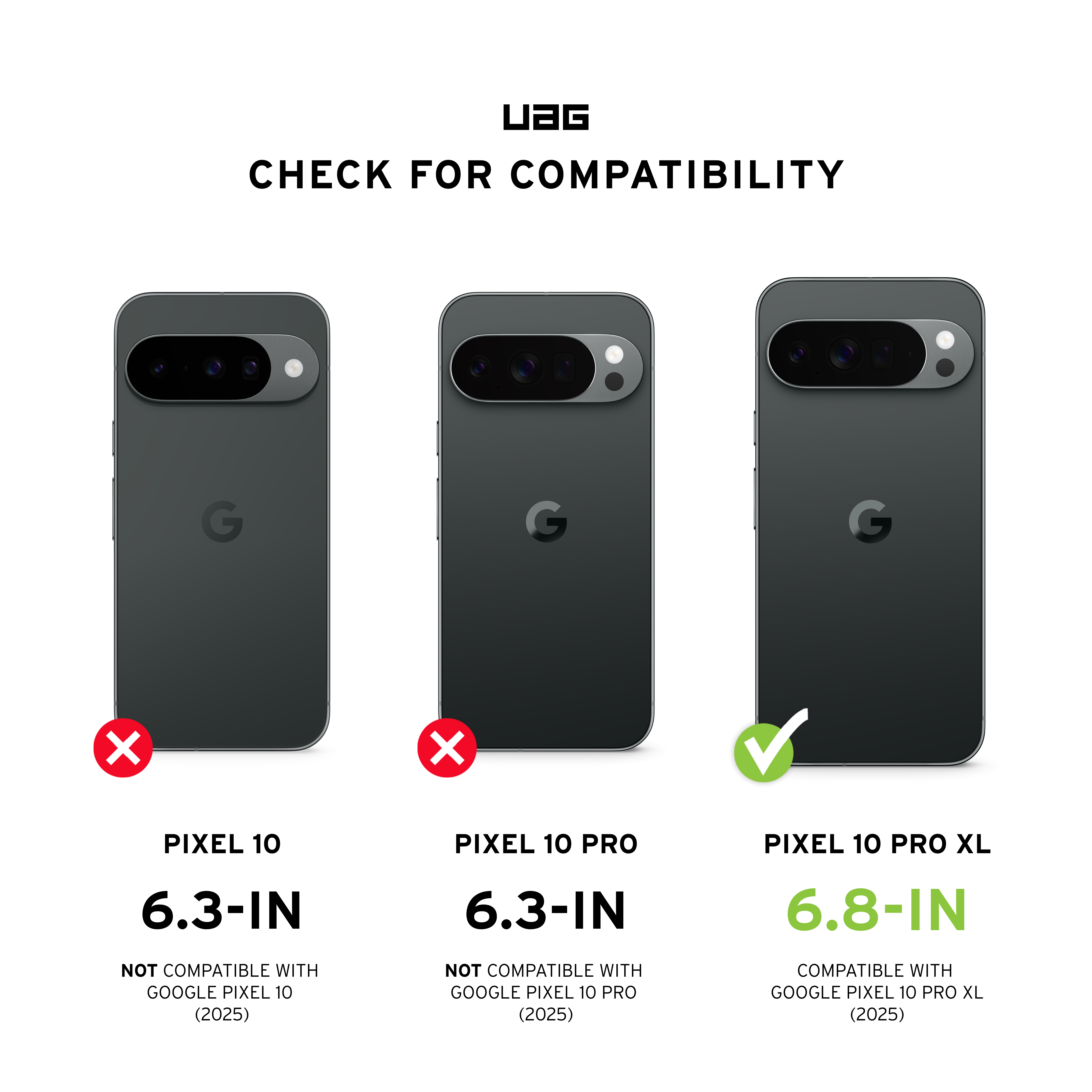 Dieses Produkt wurde von Urban Armor Gear zertifiziert und erfüllt die Kompatibilitätsstandards von Google. Google ist nicht verantwortlich für den Betrieb dieses Produkts oder dessen Einhaltung von Sicherheits‑ oder sonstigen Anforderungen. Das „made for“‑Abzeichen, Pixel und zugehörige Marken sind Marken von Google LLC.