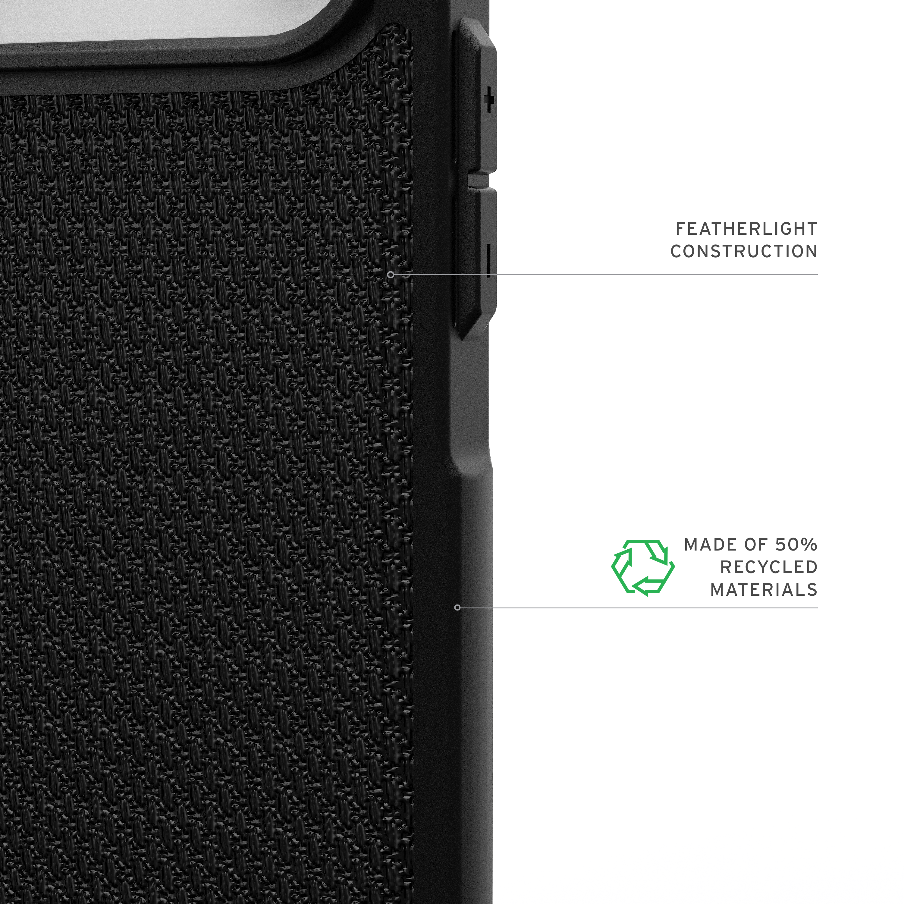 Das Metropolis LT MagSafe Case verfügt über einen robusten TPU-Rahmen in Kombination mit einem stoßabsorbierenden Innenbumper, der Aufpralle durch alltägliche Stöße, Schläge und Erschütterungen zuverlässig abfedert. Verstärkte, konturiert geformte Ecken sorgen für zusätzlichen Fallschutz. Eine hochwertige DuPont™ Kevlar®-Einlage verleiht Ihrem Gerät eine edle, griffige Oberfläche und hebt Look und Haptik auf ein neues Niveau.