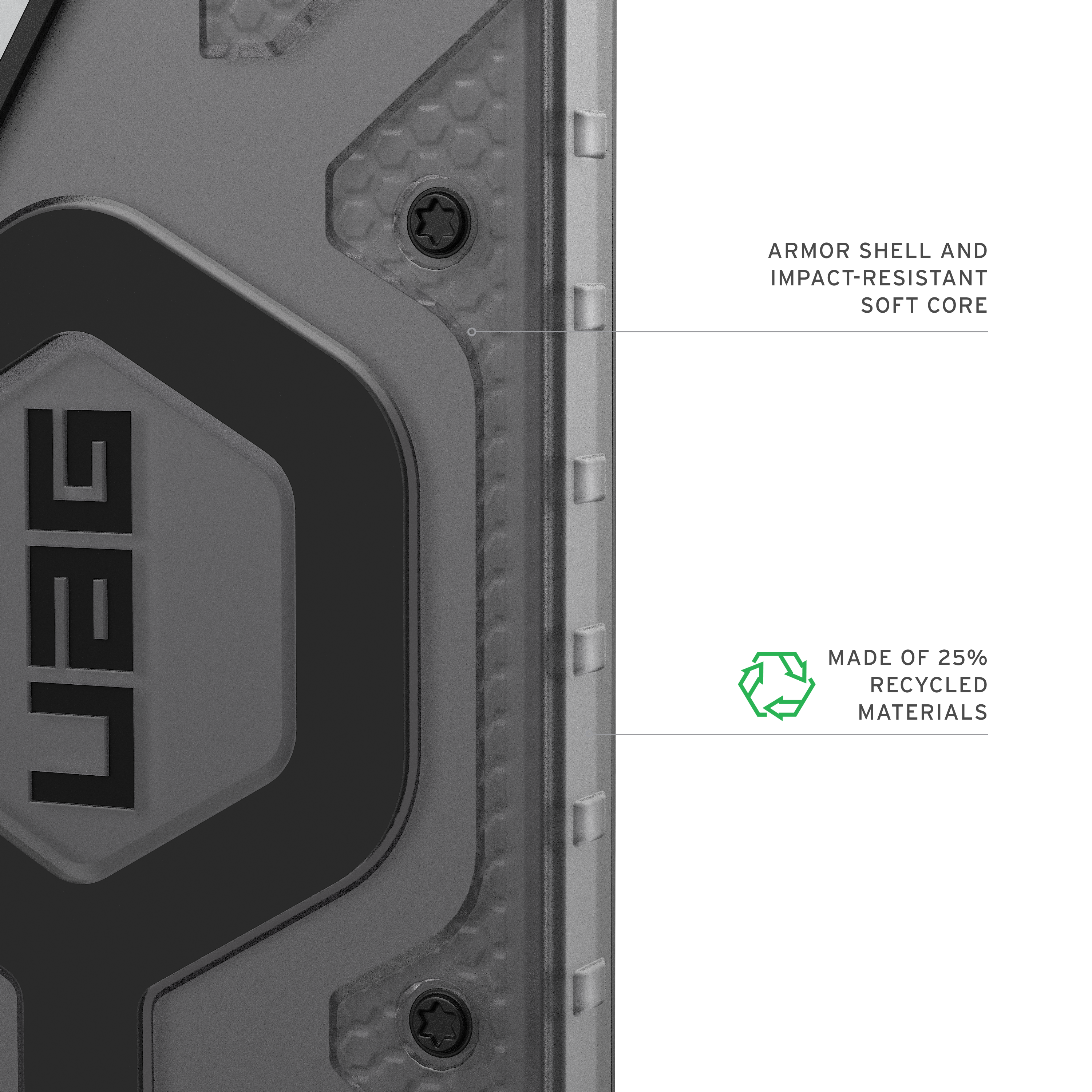 Umweltfreundliche Herstellung: Gefertigt aus 25% recyceltem Post-Consumer-Material (PCR) – vereint Nachhaltigkeit mit hoher Schutzleistung.