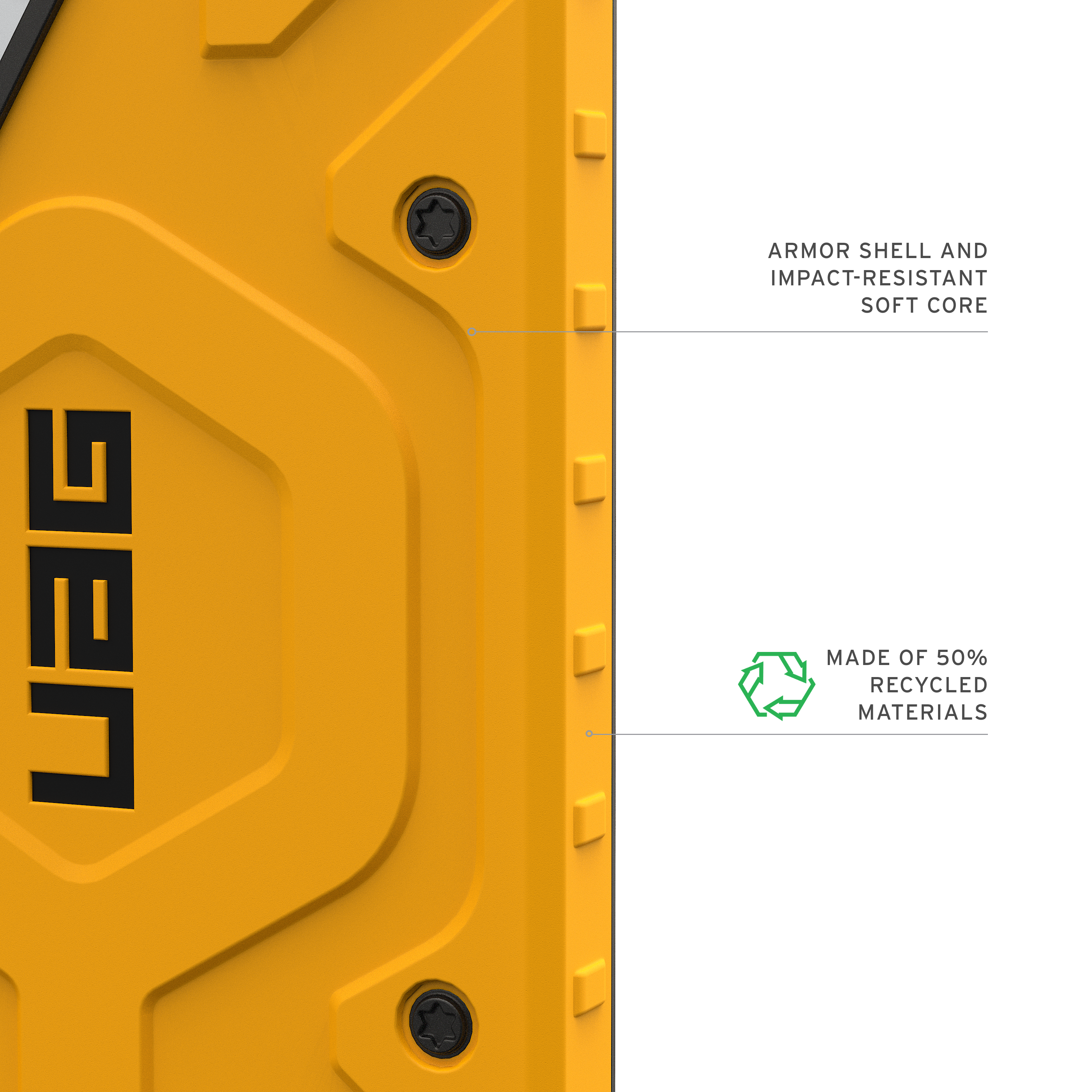 Umweltfreundliche Materialien: Hergestellt aus 50%* recycelten Kunststoffen (PCR) – nachhaltiger Schutz ohne Abstriche in der Performance.
