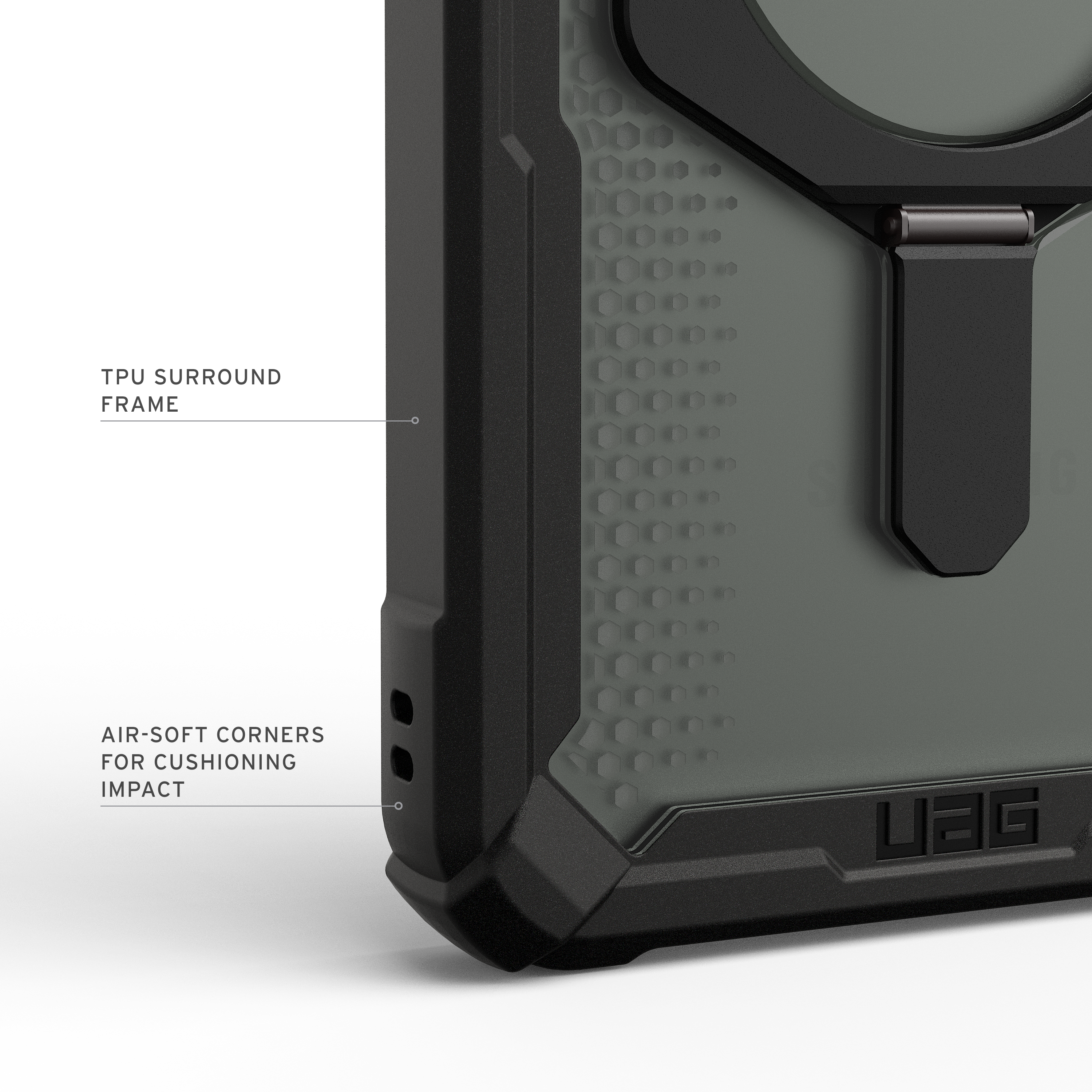 Dank fortschrittlicher Air-Soft‑Ecken bietet die Hülle eine überragende Stoßdämpfung bei Stürzen, während der erhöhte Displayschutz zusätzliche Sicherheit vor Kratzern und Rissen bietet. Das leistungsstarke integrierte Magnetmodul ermöglicht kabelloses magnetisches Laden und hält Ihr Gerät jederzeit einsatzbereit.