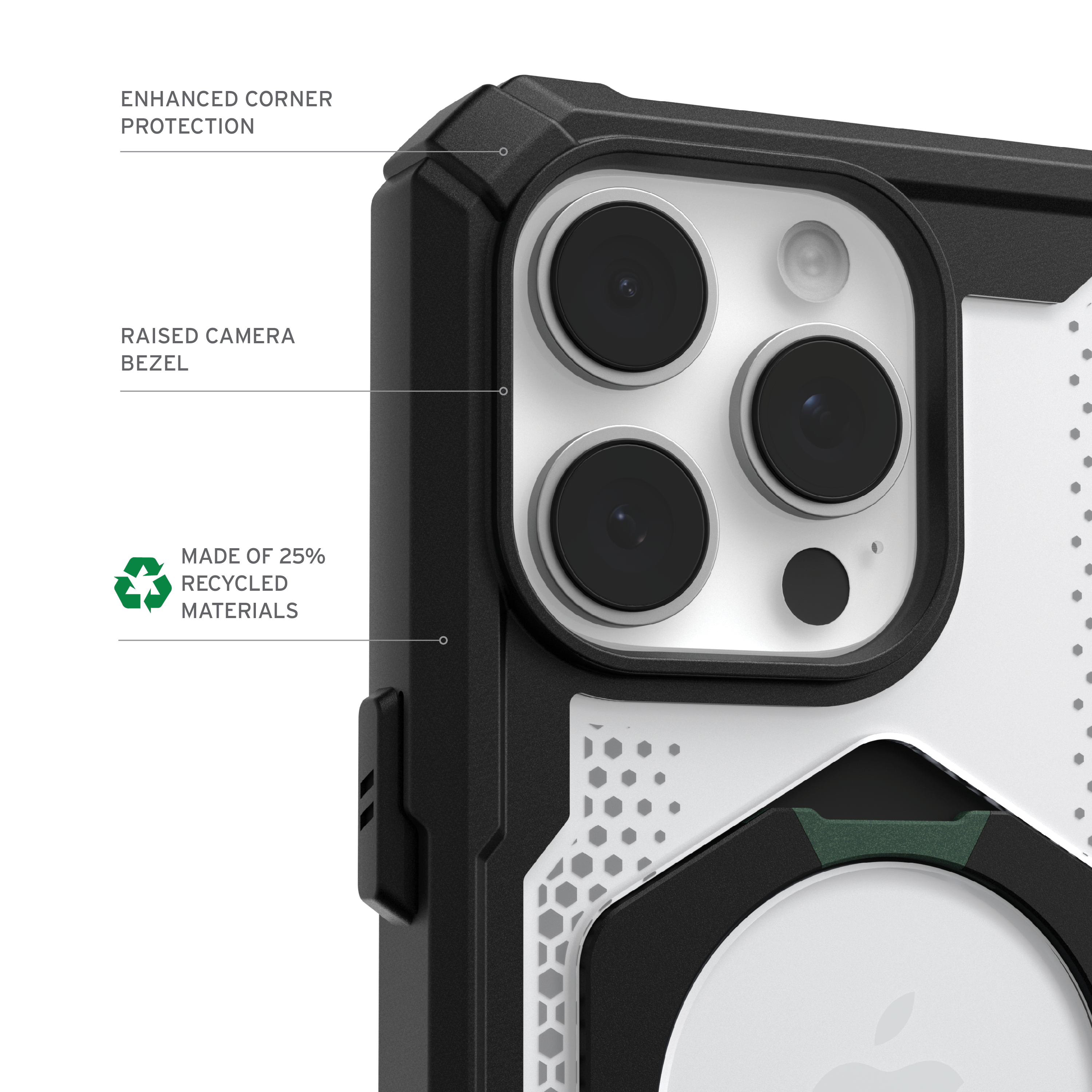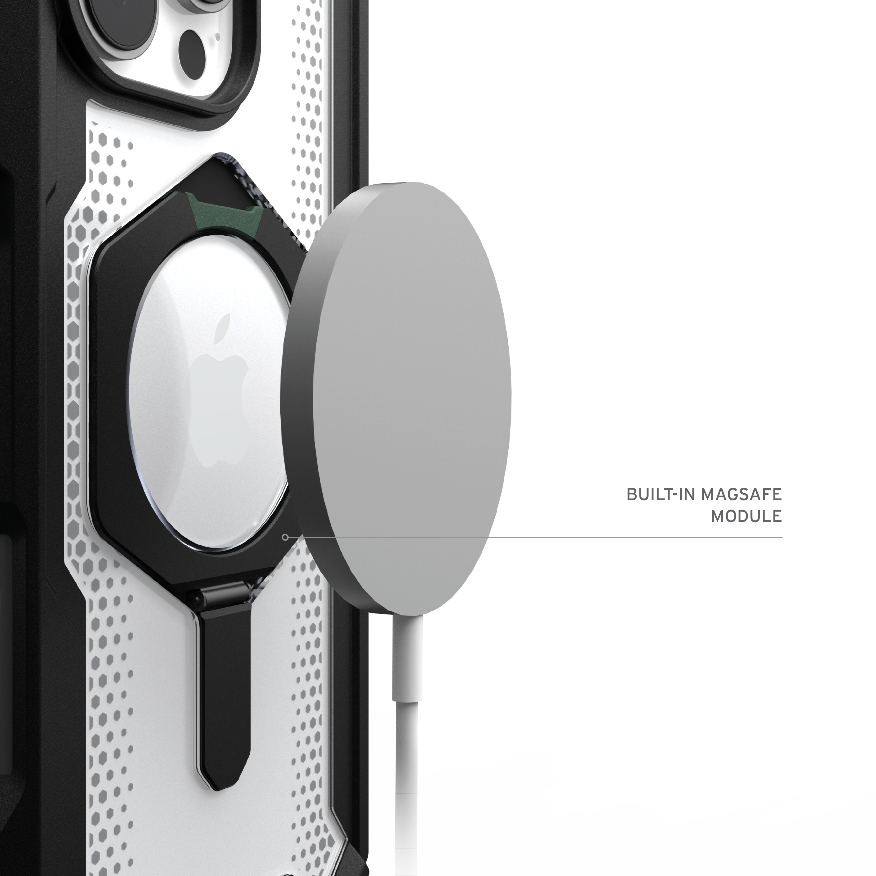 Die federleichte Verbundkonstruktion sorgt für ein schlankes Profil, ohne dabei an Stabilität einzubüßen. Dank fortschrittlicher Air‑Soft‑Ecken bietet das Case eine hervorragende Dämpfung bei Stürzen, während der erhöhte Displayrahmen zusätzlichen Schutz vor Kratzern und Rissen bietet. Das integrierte, leistungsstarke Magnetmodul ermöglicht nahtlose MagSafe‑Lade-Kompatibilität und hält Ihr Gerät jederzeit einsatzbereit.