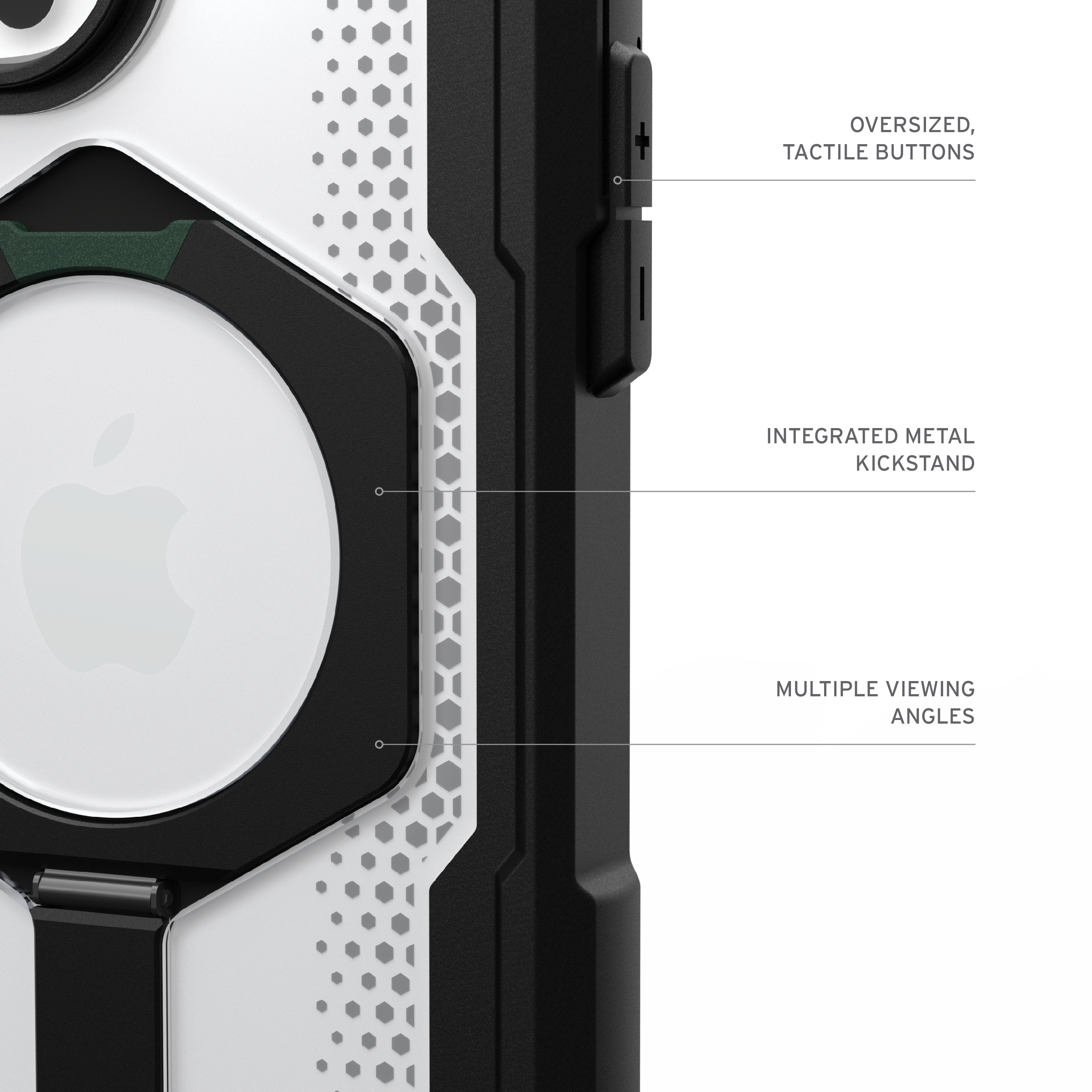 Das Plasma XTE iPhone 16 Pro Max Case vereint modernes Design mit zuverlässigem Schutz. Dieses Case verfügt über einen integrierten Metall‑Kickstand, mit dem Sie mühelos zwischen Quer- und Hochformat wechseln können – ideal für freihändige Fotos, Videotelefonie und Streaming.