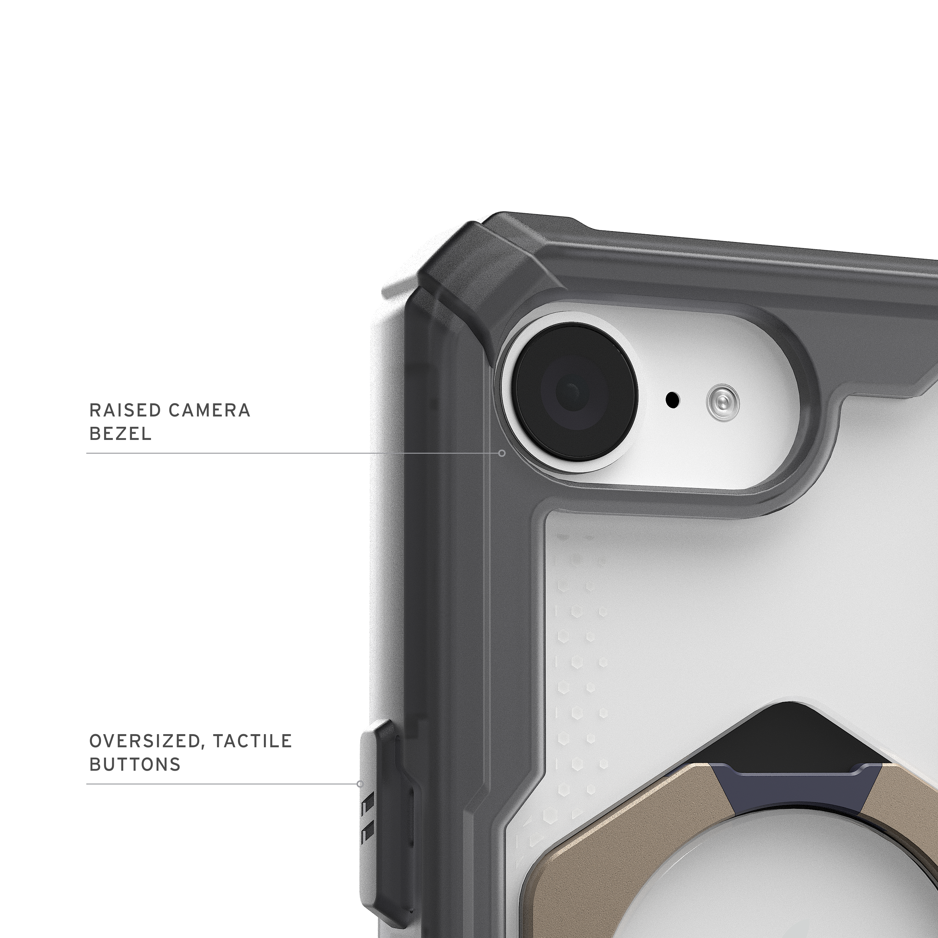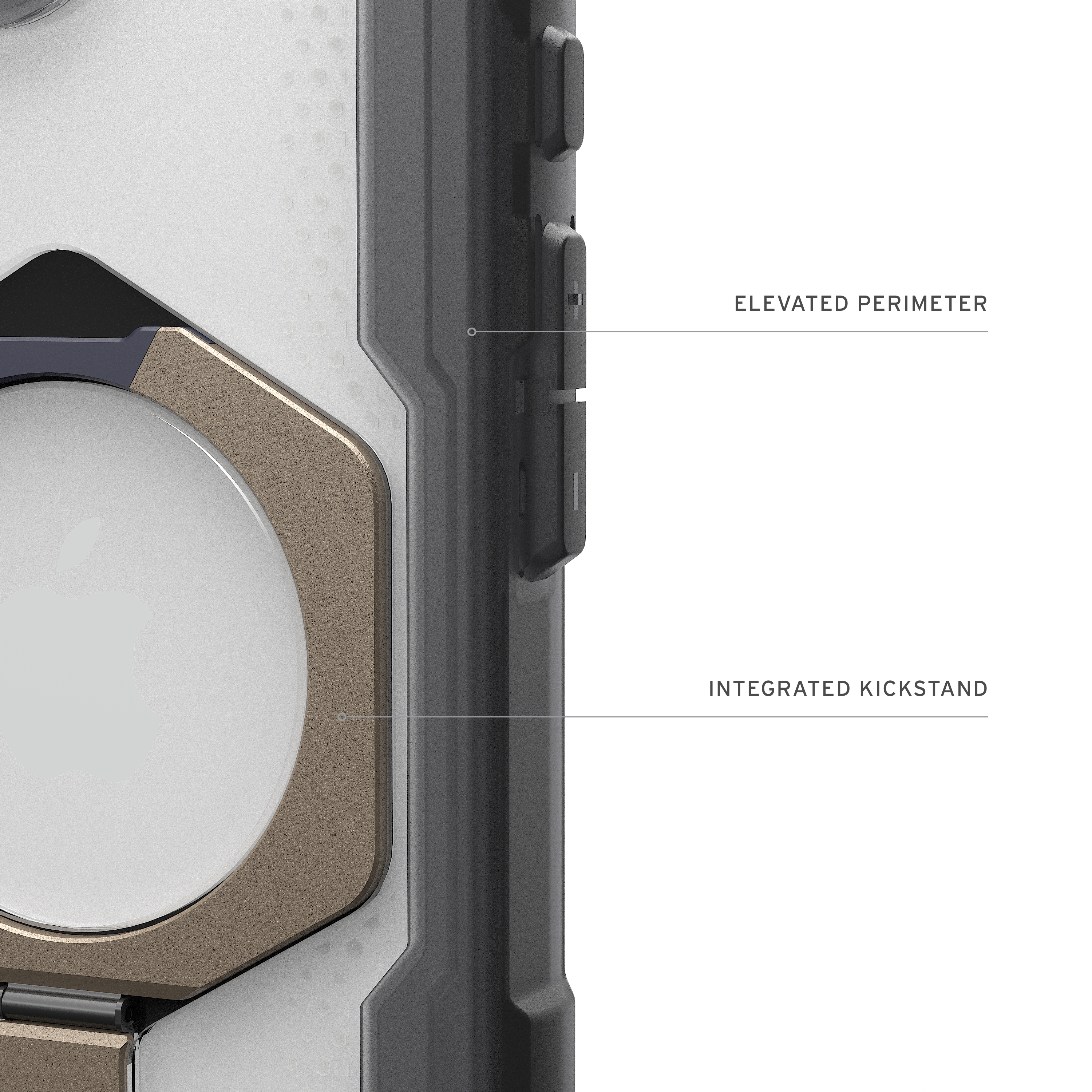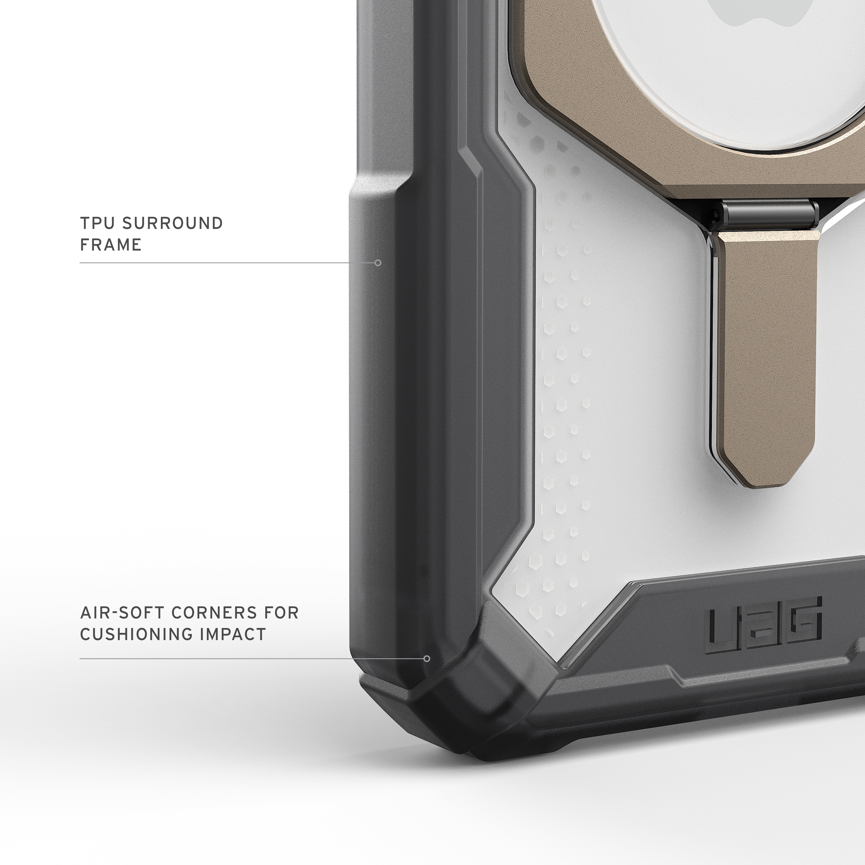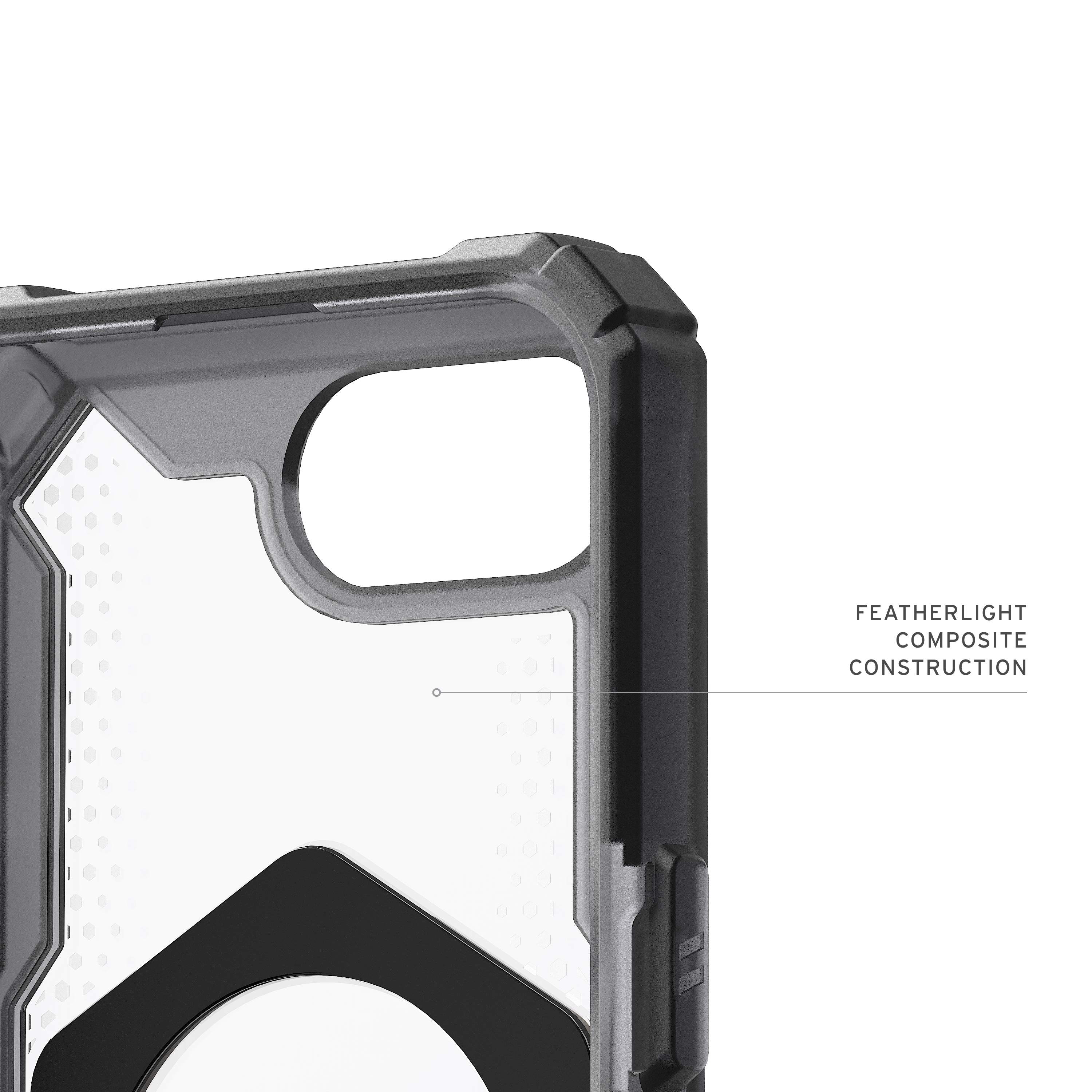 Das Case ist sowohl auf Langlebigkeit als auch Stil ausgelegt. Die besonders leichte Composite‑Konstruktion sorgt für ein schlankes Profil, ohne Kompromisse bei der Stabilität. Fortschrittliche Air‑Soft‑Ecken bieten eine hervorragende Dämpfung bei Stürzen, während der erhöhte Displayschutzrand Kratzer und Risse effektiv verhindert.