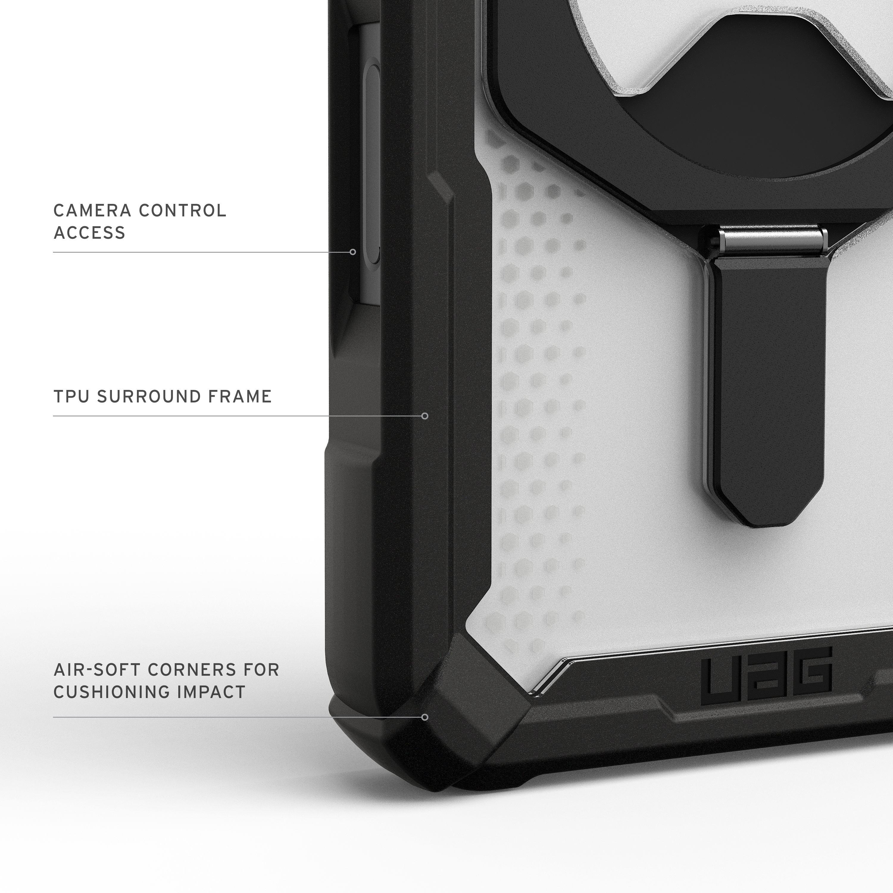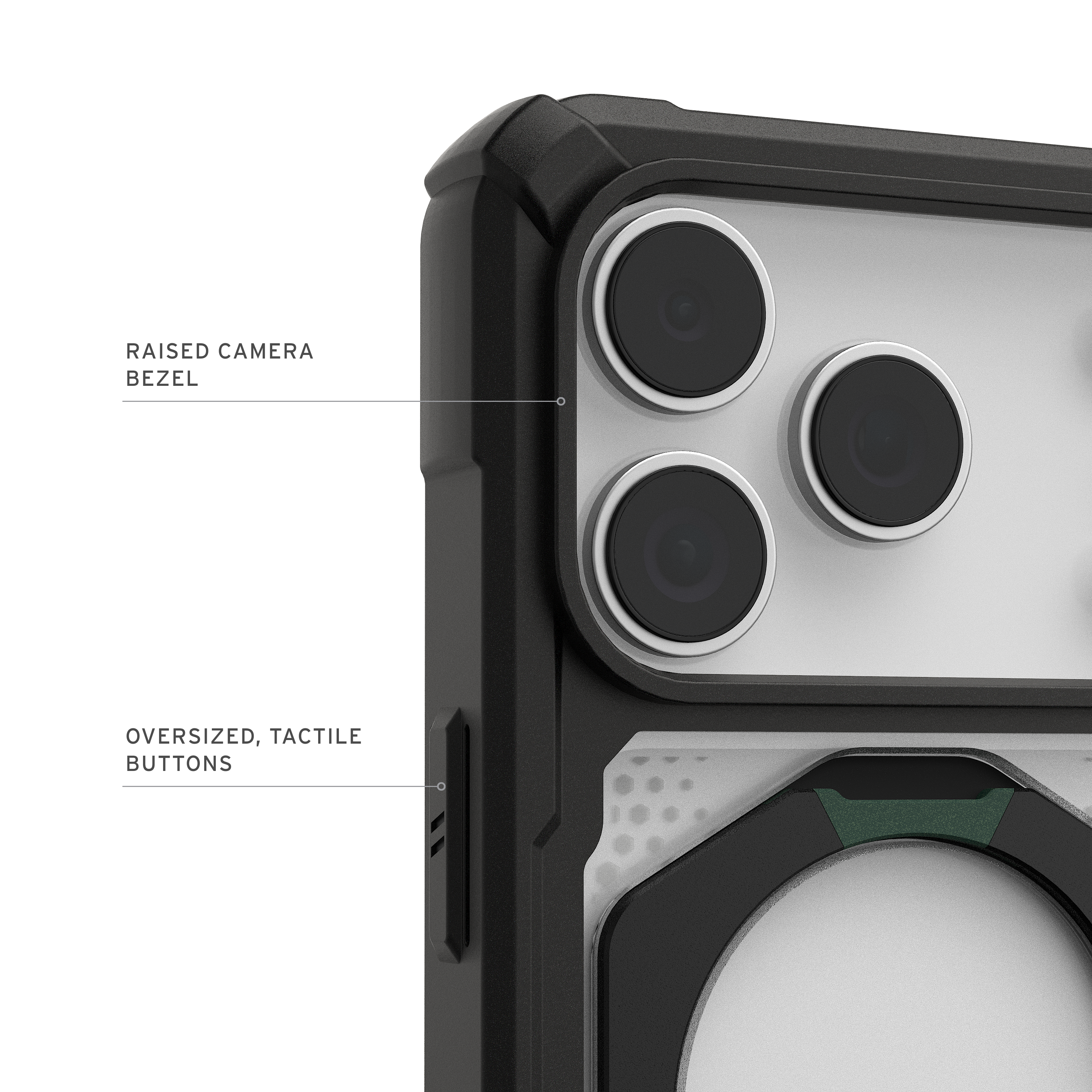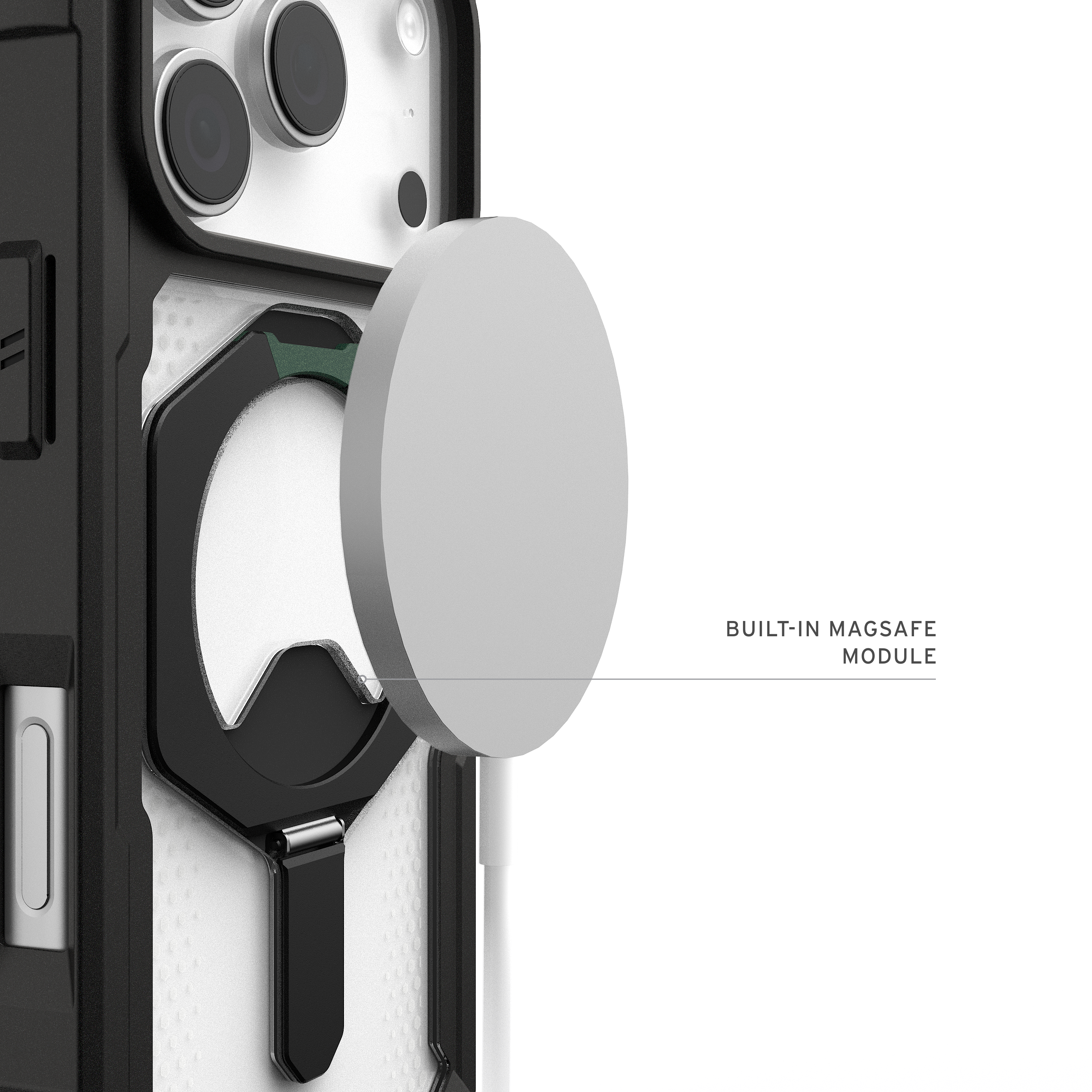 Dank fortschrittlicher Air-Soft-Ecken bietet die Hülle eine hervorragende Dämpfung bei Stürzen, während der erhöhte Displayrahmen zusätzlichen Schutz gegen Kratzer und Risse bietet. Das integrierte, leistungsstarke Magnetmodul sorgt für nahtlose MagSafe-Ladekompatibilität, damit Ihr Gerät stets geladen und einsatzbereit bleibt.