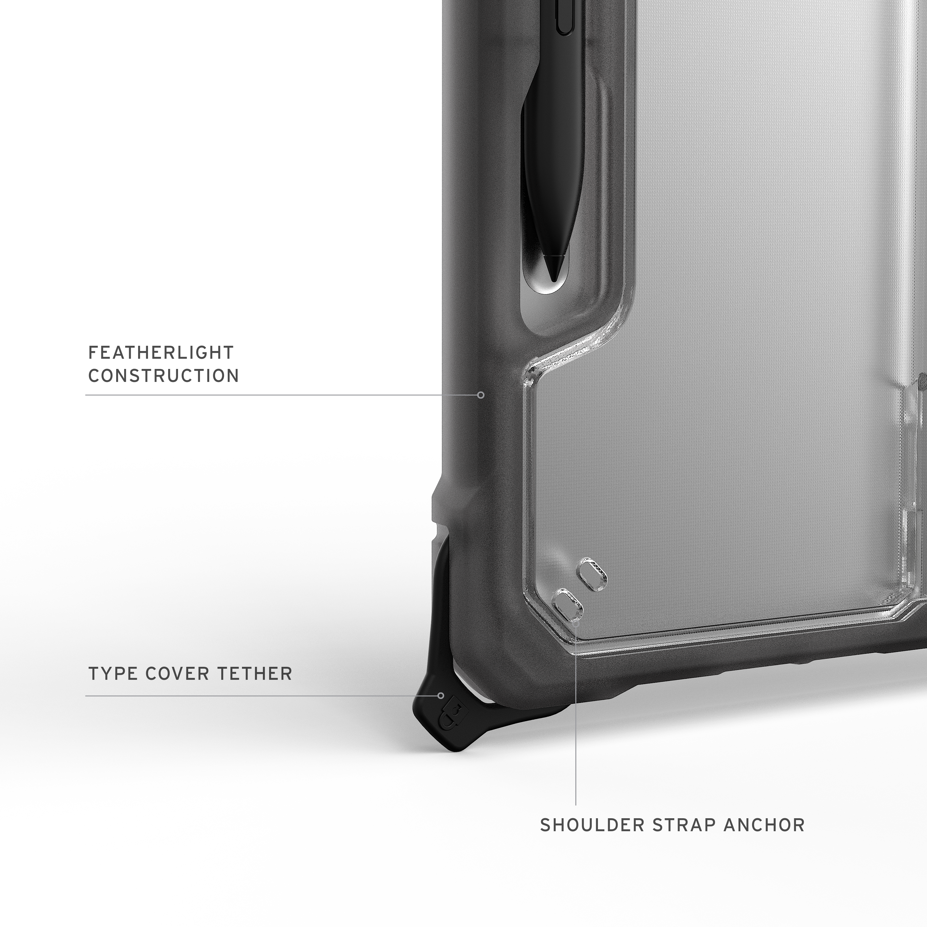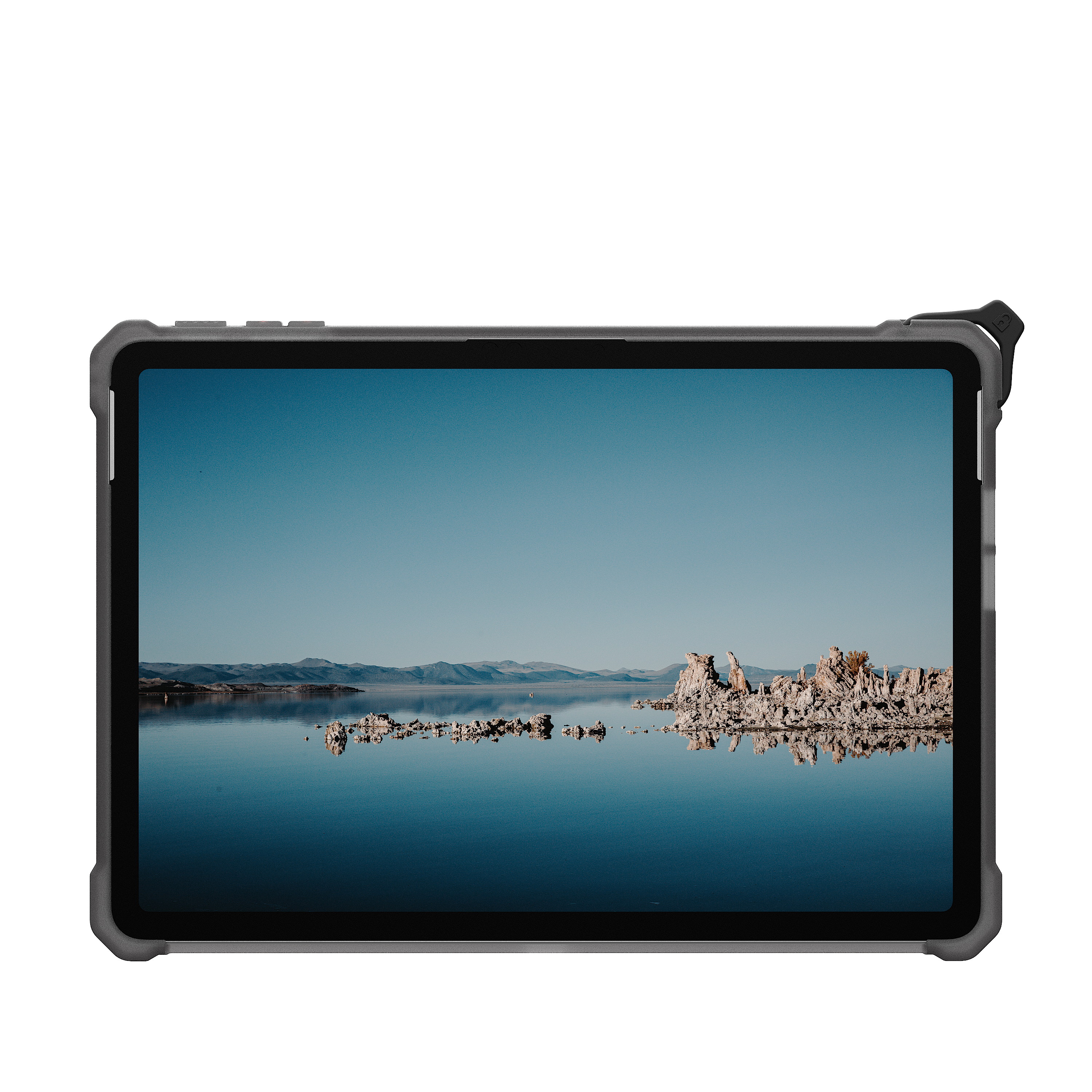 Verstärkte Ecken schützen das Gerät vor Stürzen, während präzise Aussparungen vollen Zugriff auf Anschlüsse und den Touchscreen ermöglichen. Kompatibel mit dem separat erhältlichen UAG Schultergurt ist das Case bereit für jeden Einsatz – egal wohin Ihre Arbeit Sie führt.
