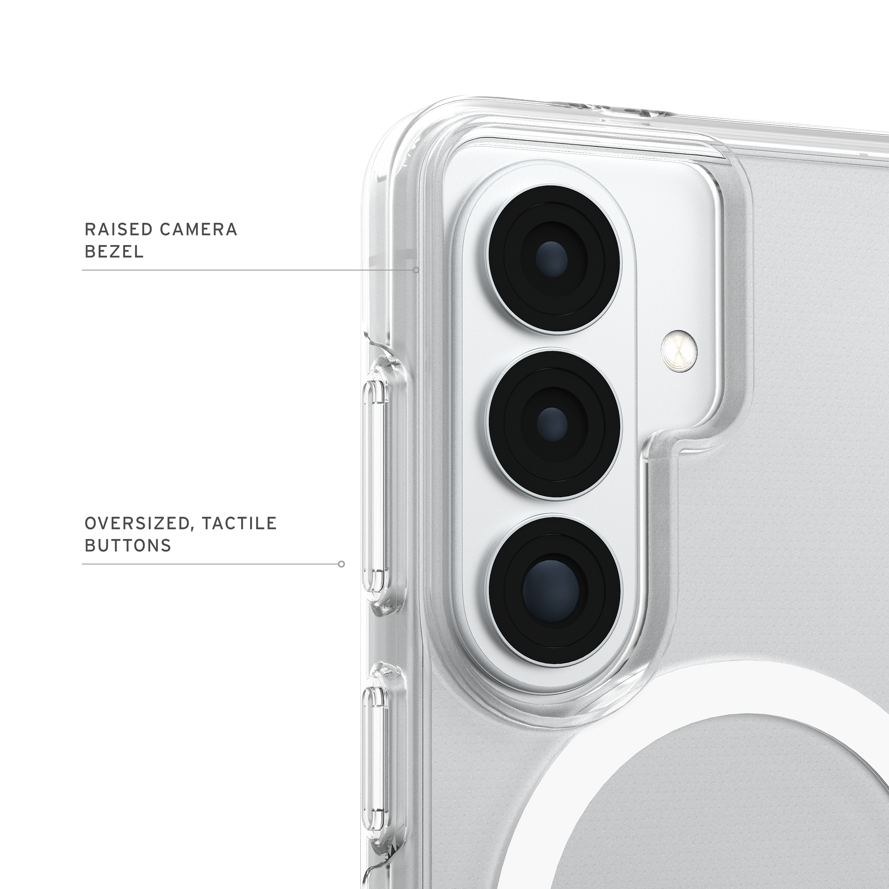 Die Scout Clear Hülle verbindet klare, minimalistische Transparenz mit maximalem Schutz. So bleibt das Design Ihres Smartphones im Mittelpunkt, während es rundum durch eine bewährte Aufprallabwehr geschützt wird. Die echte Clear-Co-Mold-Konstruktion kombiniert eine transparente Panzer-Schale mit einem stoßabsorbierenden Softcore und bietet robuste Langlebigkeit in einer modernen, dezenten Optik. Luftgepolsterte Ecken zur Stoßdämpfung, ein erhöhter Kamerarand und ein umlaufender Displayschutz sorgen für zusätzliche Sicherheit. Zudem bieten die extragroßen, taktilen Tasten ein präzises und reaktionsschnelles Bediengefühl.
