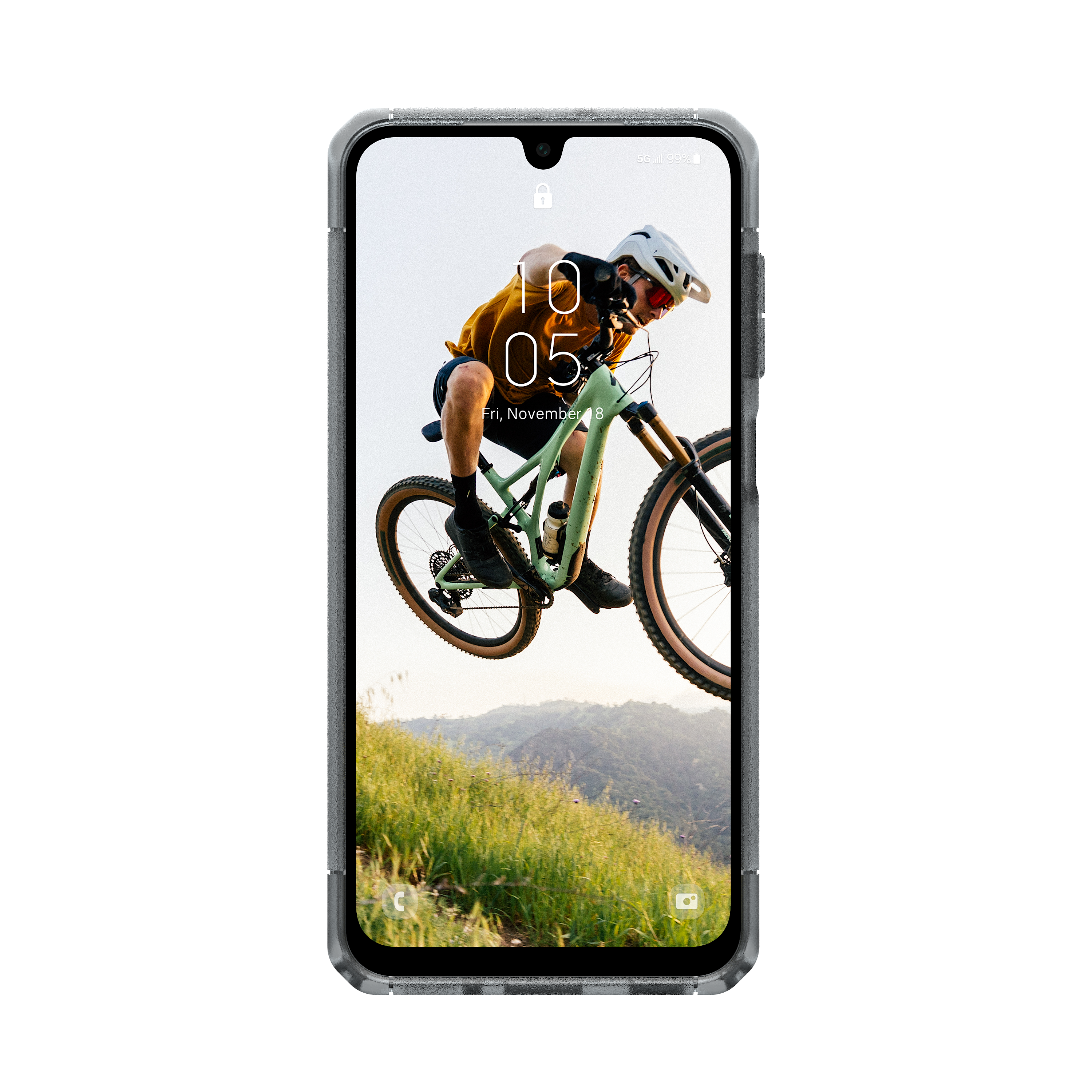 Verstärkte, texturierte Bumper bieten einen rutschfesten Halt und eine bessere Handhabung. Abgeschrägte Ecken erhöhen den Fallschutz zusätzlich. Eine erhabene Rahmenkante schützt das Display vor Rissen, während der erhöhte Kamerarand die Linse vor Kratzern auf Oberflächen bewahrt.