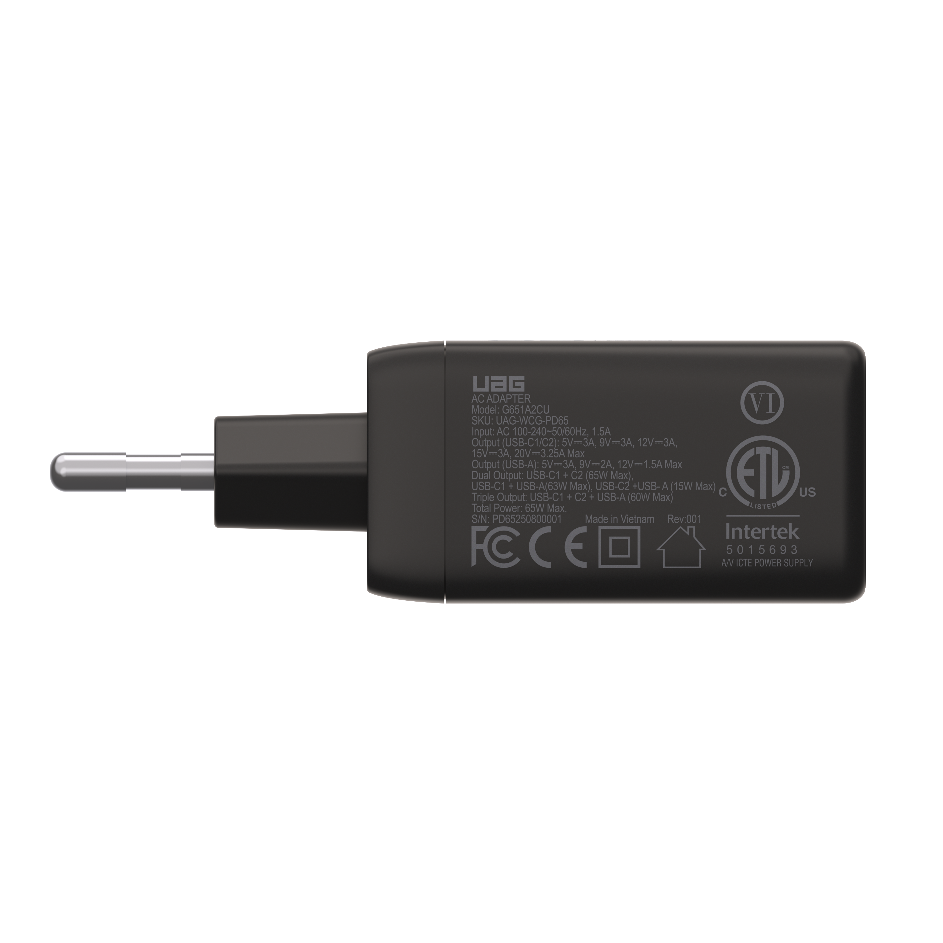 SRGE (EU) 65W 3 Port Wall Charger - Black